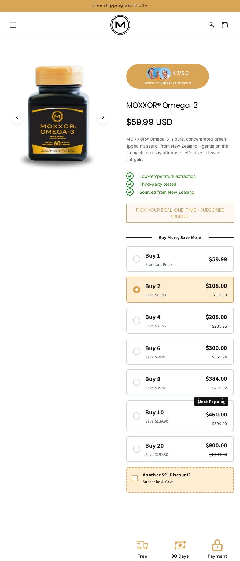 MOXXOR® OMEGA-3 is a 100% pure and natural supplement exclusively from the pristine environment of New Zealand bursting full of rich omega-3s, vitamin-E and antioxidants sourced from the world famous green-lipped mussels, kiwifruit and sauvignon blanc grape seeds that have a full range of essential free fatty acids including EPA, DHA, ETA. MOXXOR® OMEGA-3 unlike other brands of green-lipped mussel supplements, produce the green-lipped mussel oil at their own factory in New Zealand with high tech specialized equipment to extract the delicate and potent omega-3 oil. MOXXOR® proprietary extraction process ensures the effectiveness and quality of the natural state of the Omega-3 oil providing a superior product.