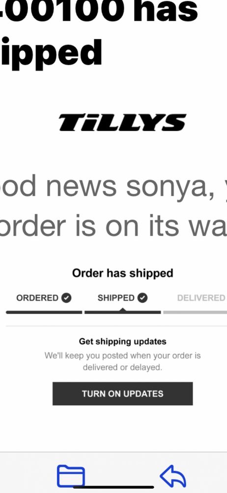 Online orders are jus a headache the deliver it the shipping company are just scammers claiming items are delivered and Tilly's never addresses the problem I usually like ordering clothes for the family but now won't be ever ordering from them.