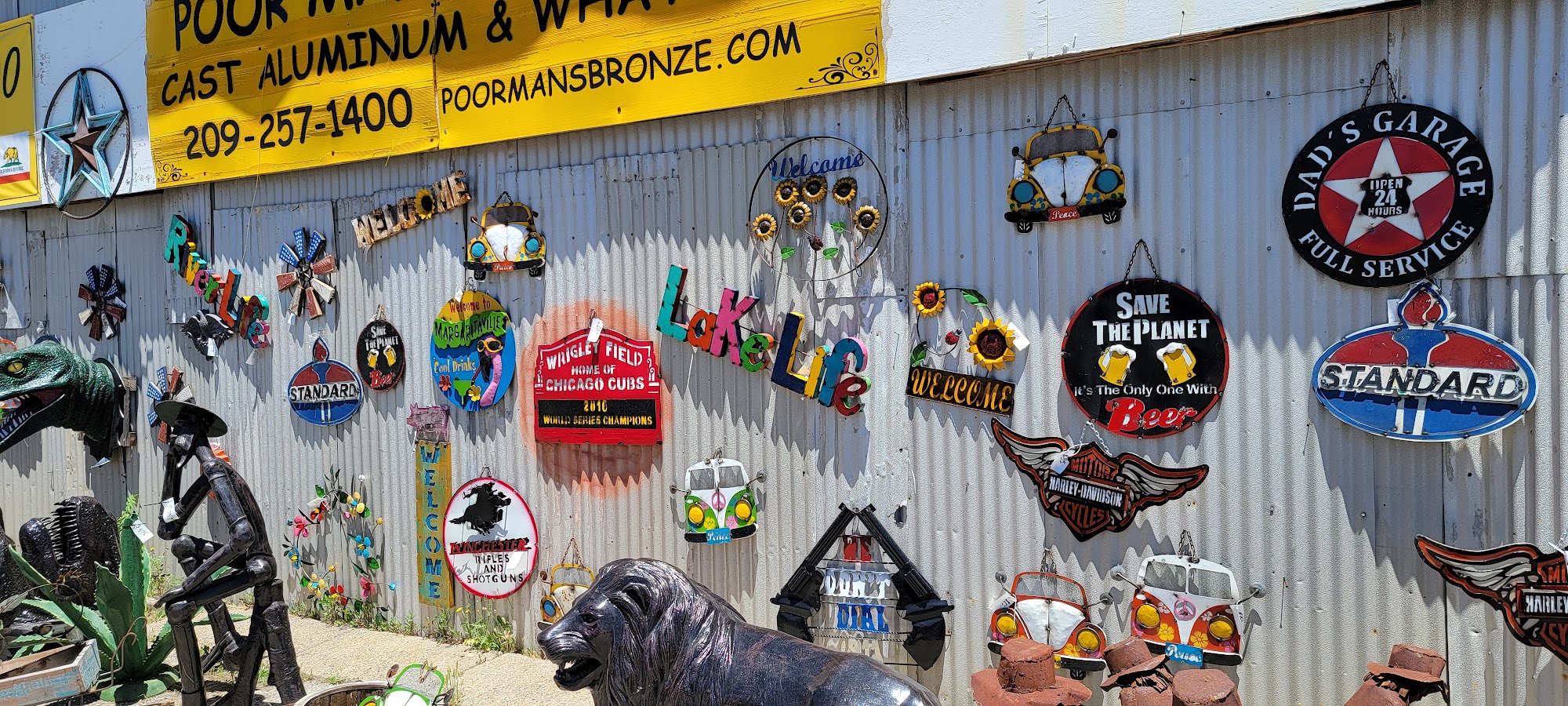 We carry an incredible and large selection of affordable sculptures and statues in our gallery along with other collectible art and gifts made from recycled material. Our statue sizes range from life size to desktop which are perfect for residential, restaurants, municipalities, park & recreation departments, libraries, resorts, catering halls, commercial buildings, parks, zoos, tourist attractions, lawn & garden décor and any facility that requires a quality art piece. We also offer other creative recycled metal home and garden decorations such as metal mailboxes, light poles, flags and wall décor.