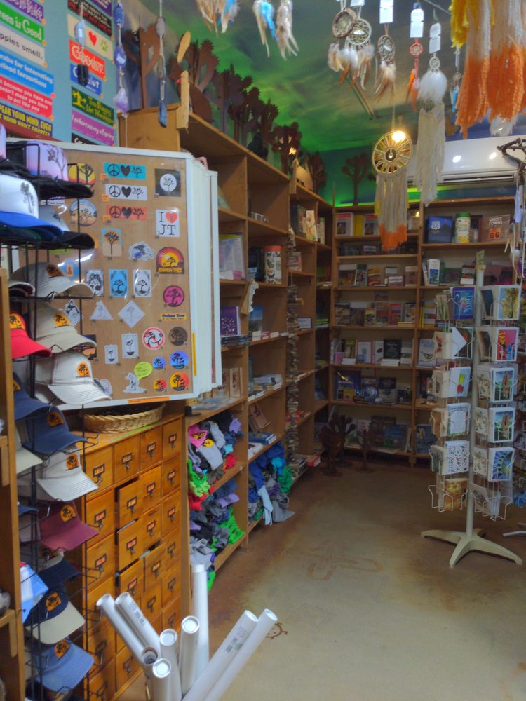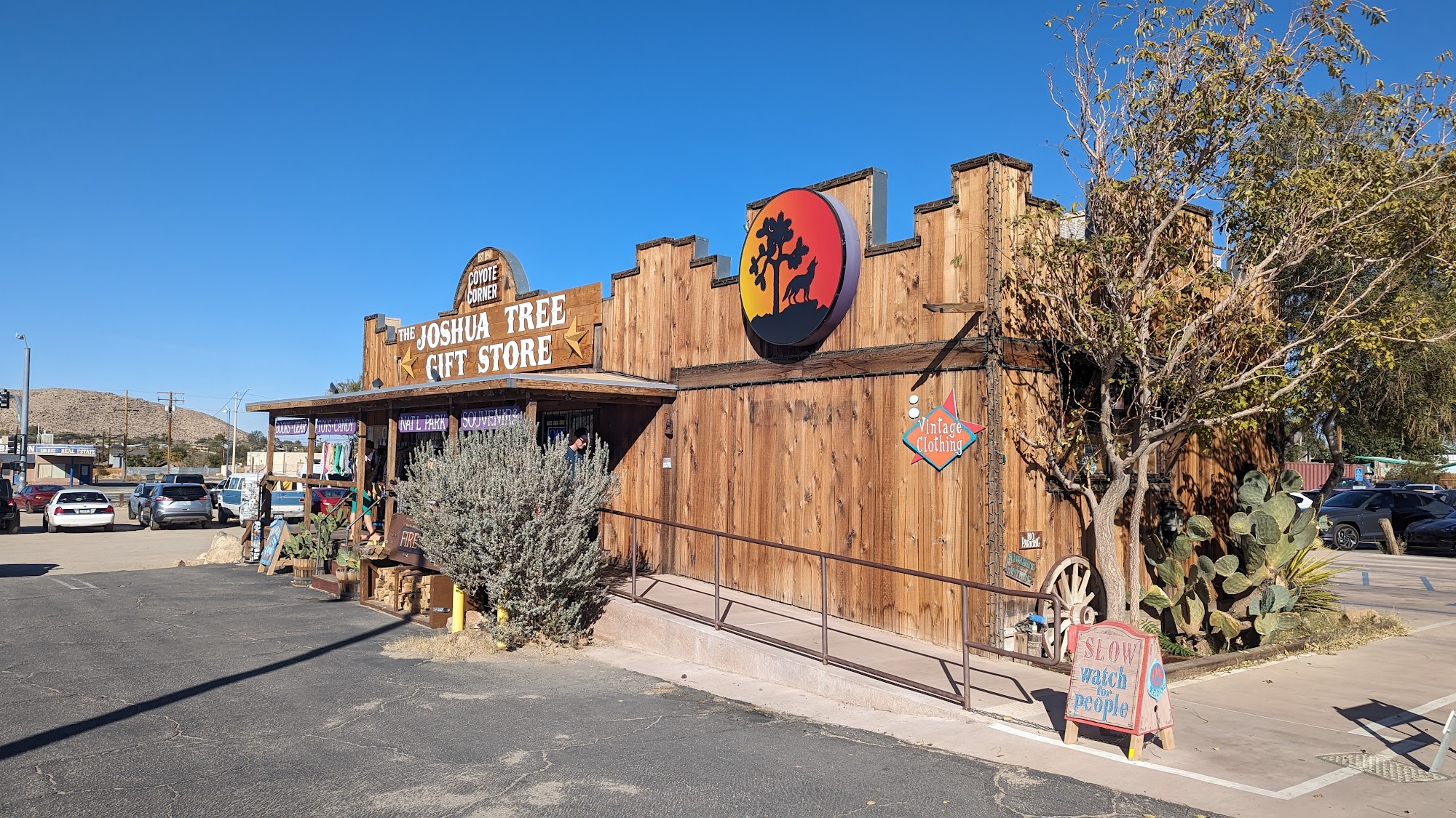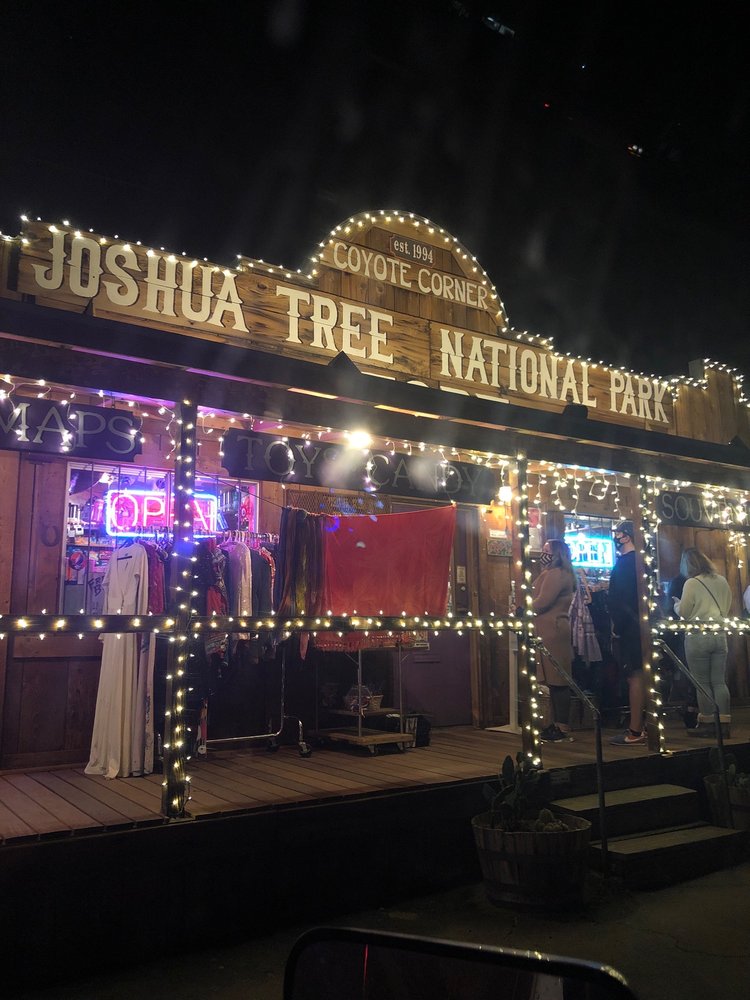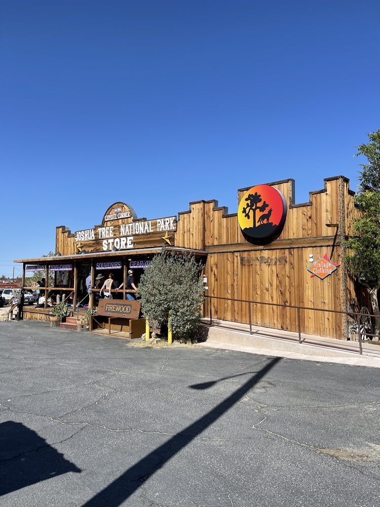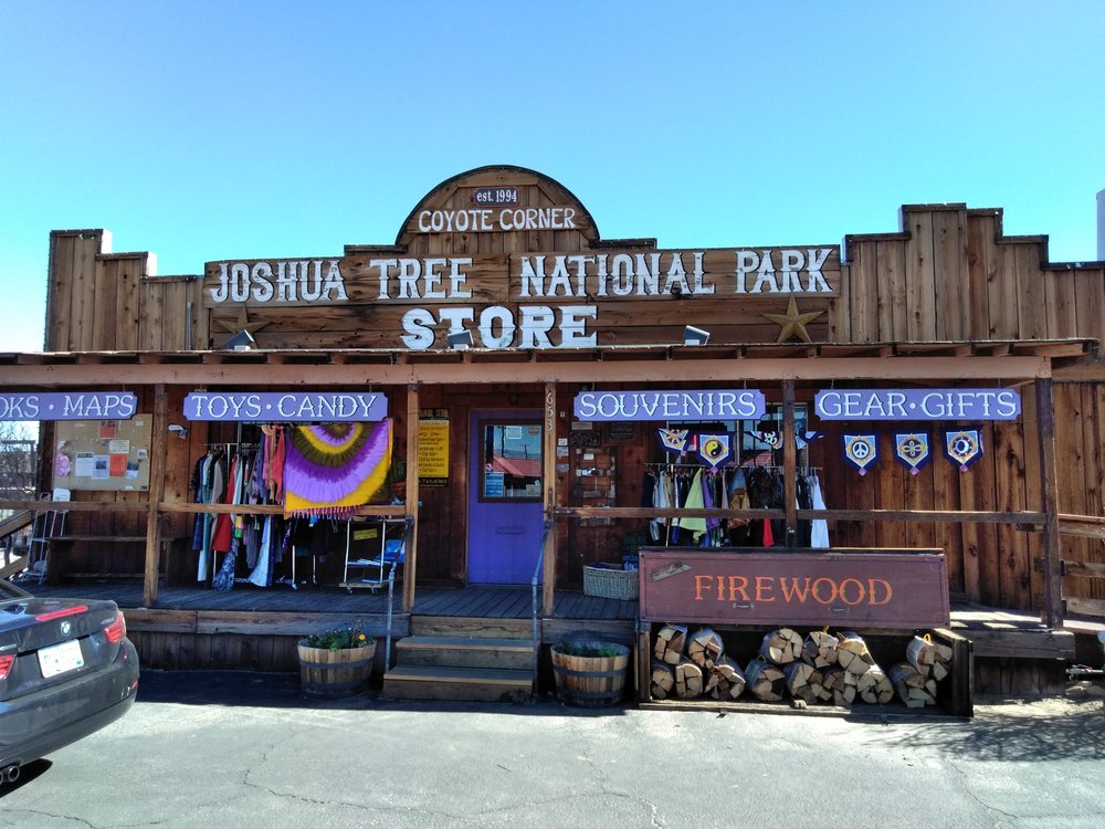 Coyote Corner is a charming one stop shop and cute little spot right outside of Joshua Tree National Park. It is the best place for souvenirs and gifts, carrying anything and everything you could possibly imagine. The store has a wide collection of unique and quirky items, from t-shirts, locally made gifts, and jewelry to climbing tape, cactus candy, snacks, crystals, postcards, magnets, stickers, and camping gear. It offers something for everyone at decent prices, often cheaper than the park visitor centers. The employees are friendly and helpful. Note that showers are no longer available.