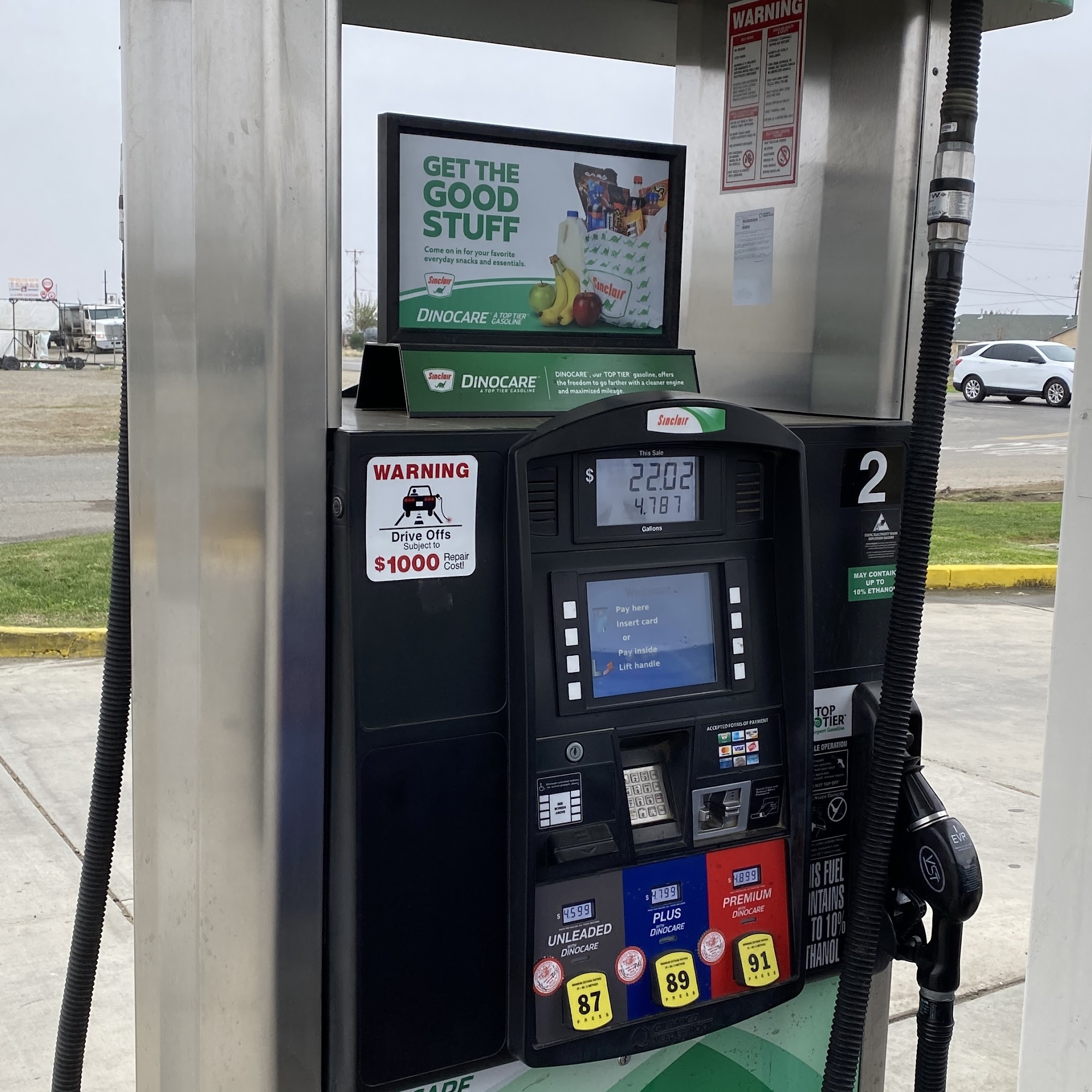 It's 1 mile down the road! Def cheaper fuel than immediate off-frwy spots. Pretty cool truck-stop vibe store. Closing time is flex- "eh, 10.. 10:30..."
