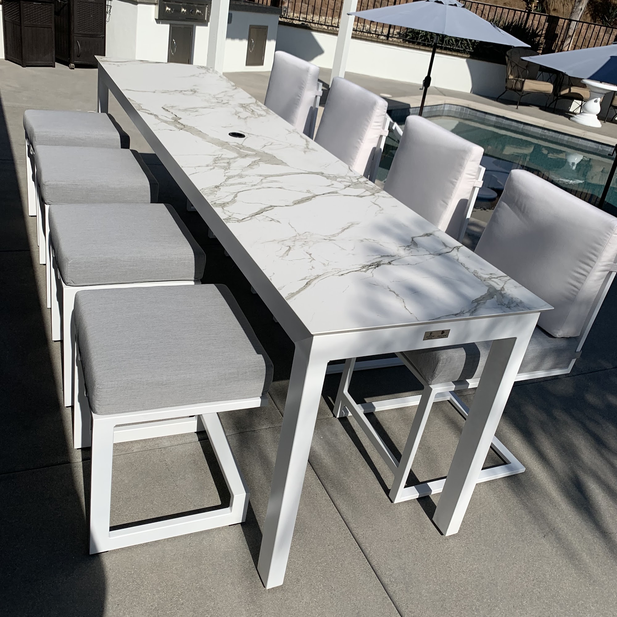 At CC Patio, we believe in transforming your outdoor space into a unique resort-style setting with our luxury patio furniture. Our commitment to exceptional service and quality craftsmanship is evident in every piece we create. From patio seating to designer patio furniture, our products are all made in the USA, ensuring durability and style. Our process starts with a complimentary on-site consultation that allows us to learn about you, your space and your vision. After this, we will put together a formal proposal to give you a 3D visual representation usually with multiple options of our custom pieces within their dedicated environment. Once all the elements are agreed on and approved, the production begins. Call today to learn more!
