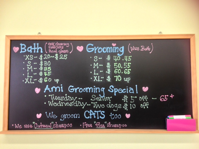 Ami's grooming is the best! I am so glad that I found this awesome place. My dog is very happy when i pick her up, and the service is fantastic. Very good service at a fair price!