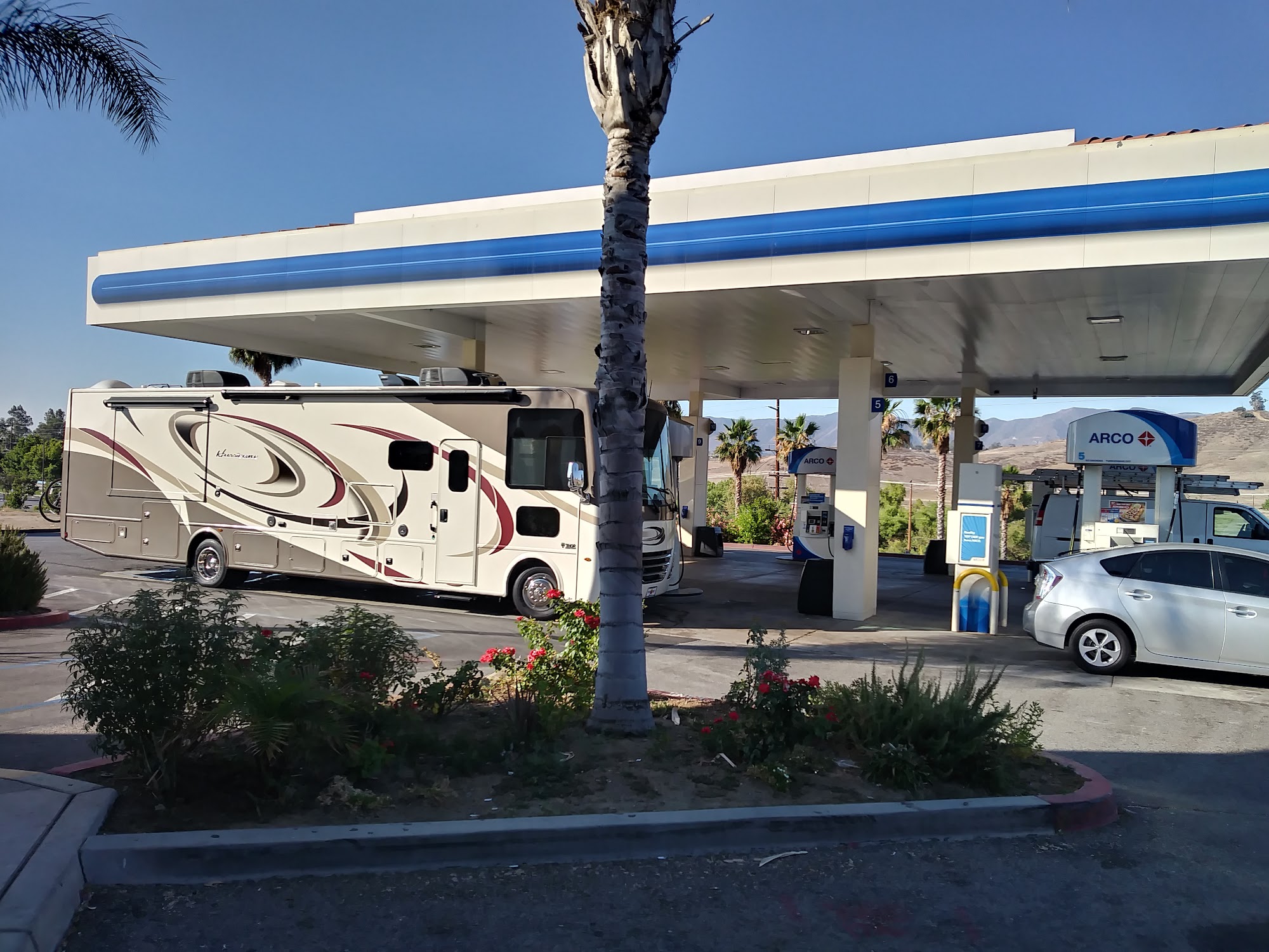 This Arco has a great car wash with brushes that actually clean your car. It is clean inside also right near the on/off ramp off the 15 fwy Nichols ramp.