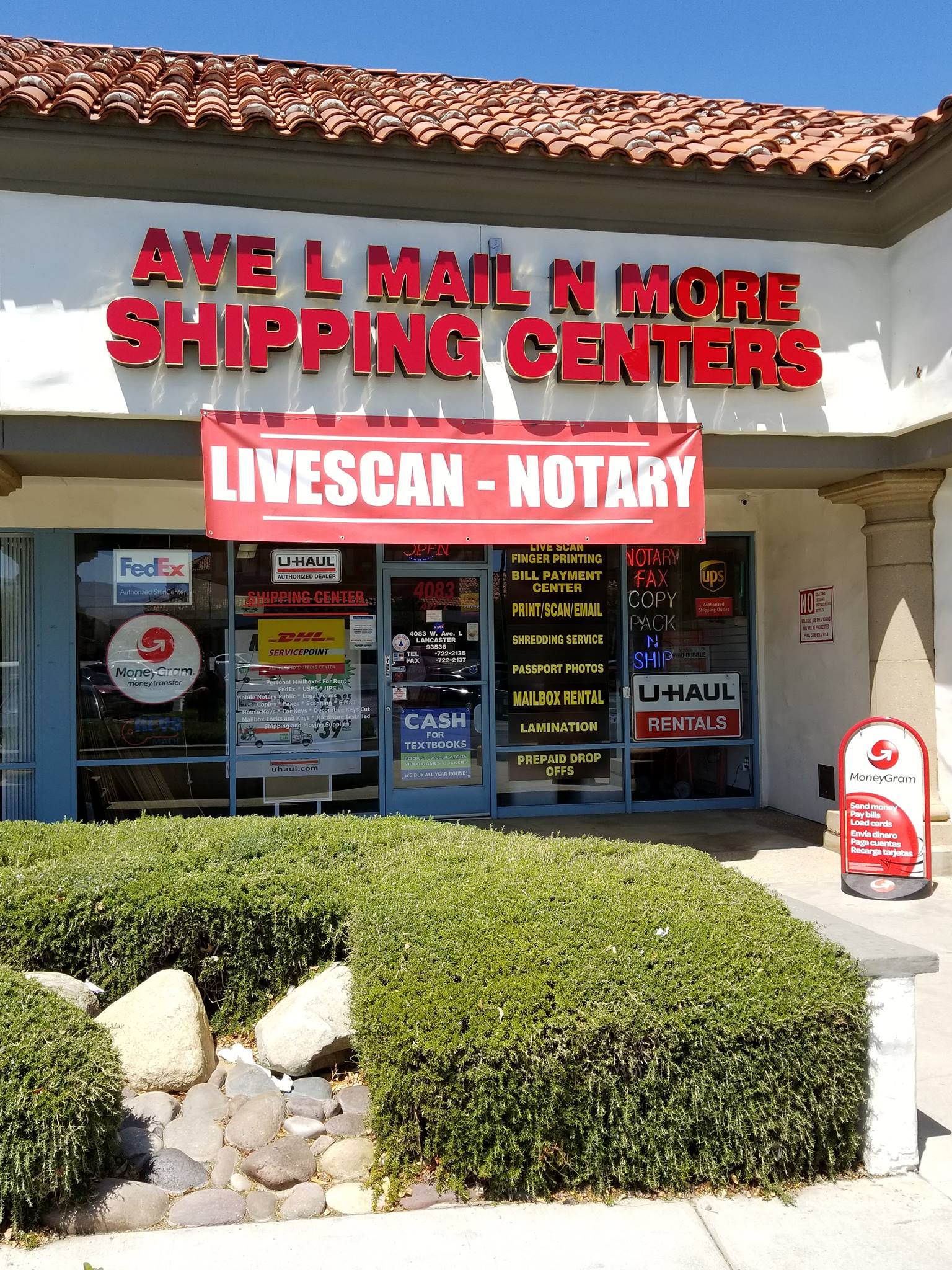 Ave L Mail N More is the trusted Shipping and Postal Service provider in the Antelope Valley, offering a full suite of essential business and personal services. They specialize in Mailbox Rentals, U-Haul Rentals, Packing Supplies, and crucial professional services like Notary Public and Passport Photo Processing. They are also an authorized provider of Live Scan Fingerprinting (FBI-Approved Channeler). Their services include Print, Scan, Email, Fax, and Shredding, as well as mail and notary services. They proudly serve Lancaster, Palmdale, Rosamond, Acton, Santa Clarita, and Edwards AFB. Customers praise the business for its excellent customer service, professionalism, and efficiency, particularly with their Live Scan and shipping services. The staff is described as very nice, helpful, and caring, making the experience a great one for those in need of their services.