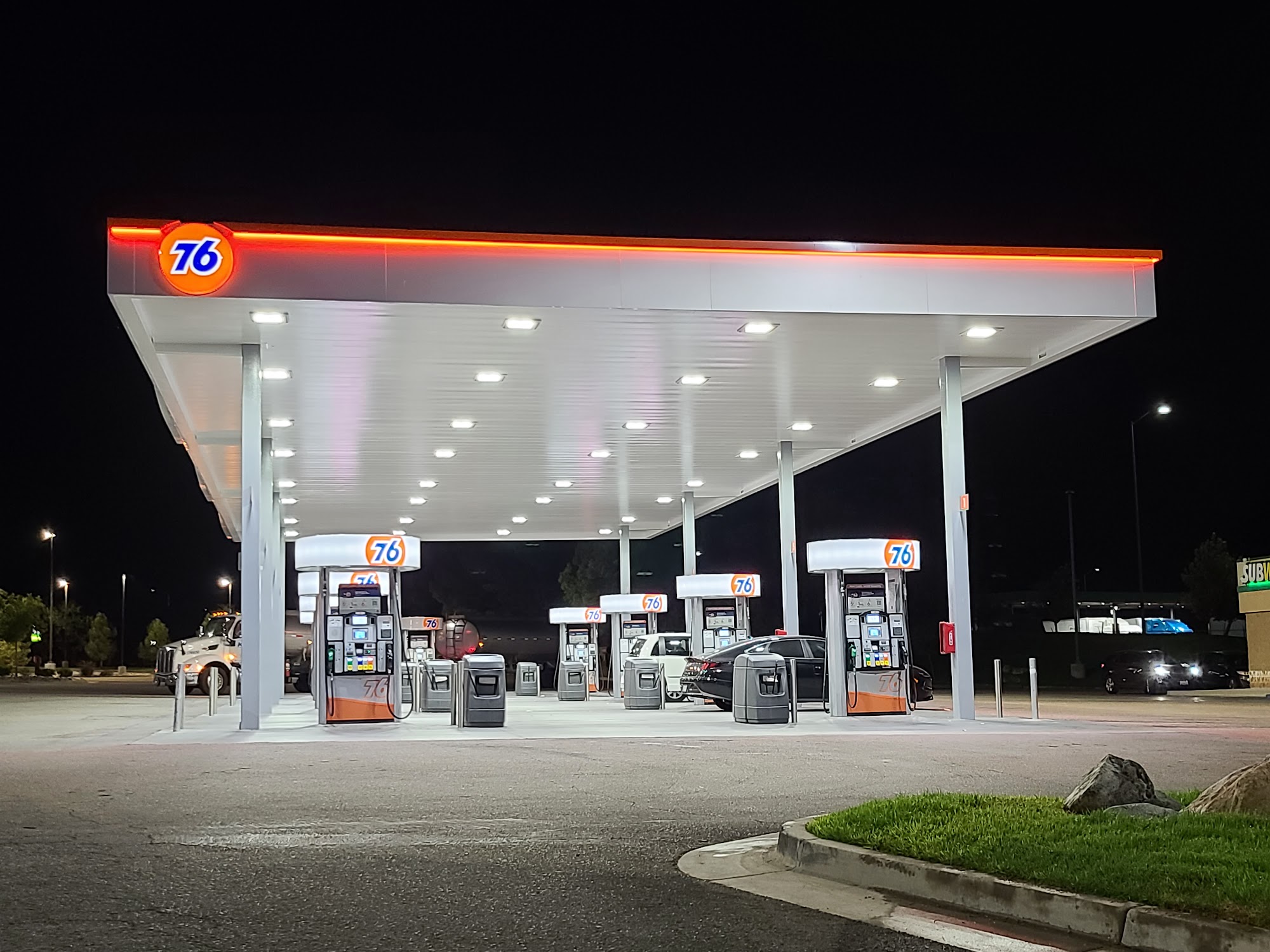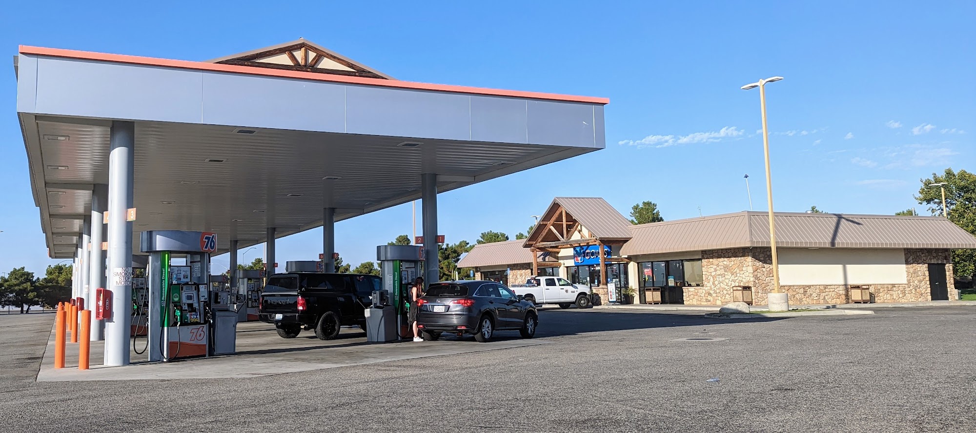 76® gas stations offer Top Tier® gasoline and various amenities for drivers, whether they are commuting or taking a road trip. The restrooms are consistently clean, well-stocked, and decorated for holidays, providing a comfortable and pleasant experience. The station has a good selection of snacks and drinks, and there is a large, well-maintained grass area behind the station that is ideal for letting dogs stretch and use the restroom. Customers praise the friendly staff, the ample gas pumps, and the overall cleanliness and safety of the location. The station is a popular pit stop for travelers, offering a convenient place to refuel, use the restroom, and stretch before continuing their journey, especially when passing through the Grapevine area. Overall, 76 provides a reliable and enjoyable experience for drivers.