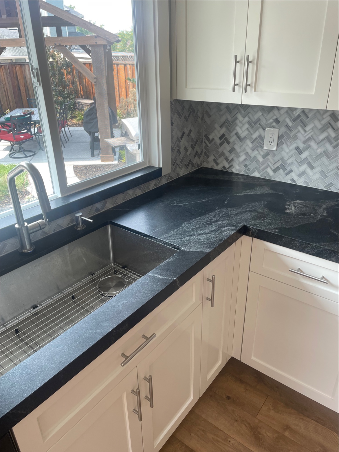 I am thrilled with my kitchen counters and bathroom surround! The veining matches up PERFECTLY and the quality of work is fantastic. Tara and Tom were great to work with and I will use their services again in the future.