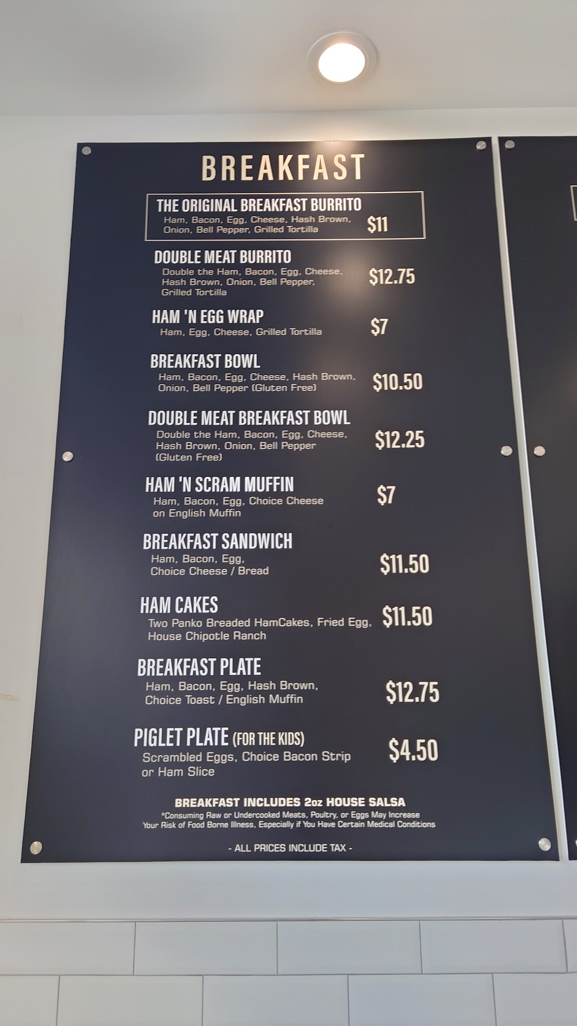 Great burrito! The ham tastes great, good balance of ingredients, onions and green bell peppers are well cooked and chopped so they dont stand out in a bad way. Overall nice home-made style breakfast burrito!