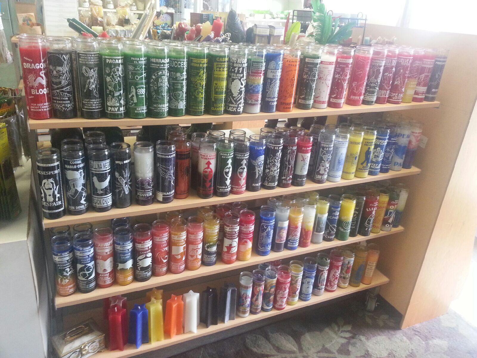 A lot of magical things, candles, oils, incense, and more.