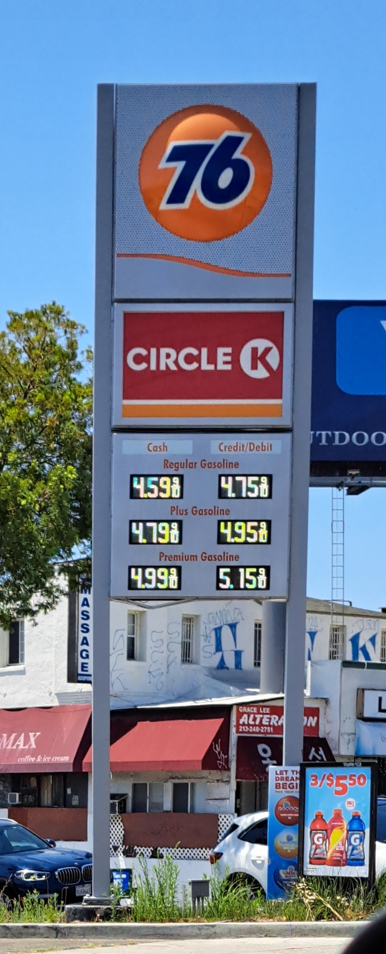 76® gas stations offer TOP TIER® gasoline and a friendly environment for drivers to fuel up for their adventures. Whether commuting or taking a road trip with friends, 76 can get you refreshed and fueled up for your drive. The gas station has a convenient location, reasonable prices, and well-maintained pumps. The attached Circle K convenience store is spacious, clean, and well-stocked, with a good coffee area. While the area can experience heavy traffic during the day, the gas prices are on the cheaper end compared to nearby stations. The station also provides an air pump that accepts quarters or dollar bills, though the hose may not be long enough to reach all four tires. Overall, 76 is a reliable choice for drivers looking to refuel and refresh.