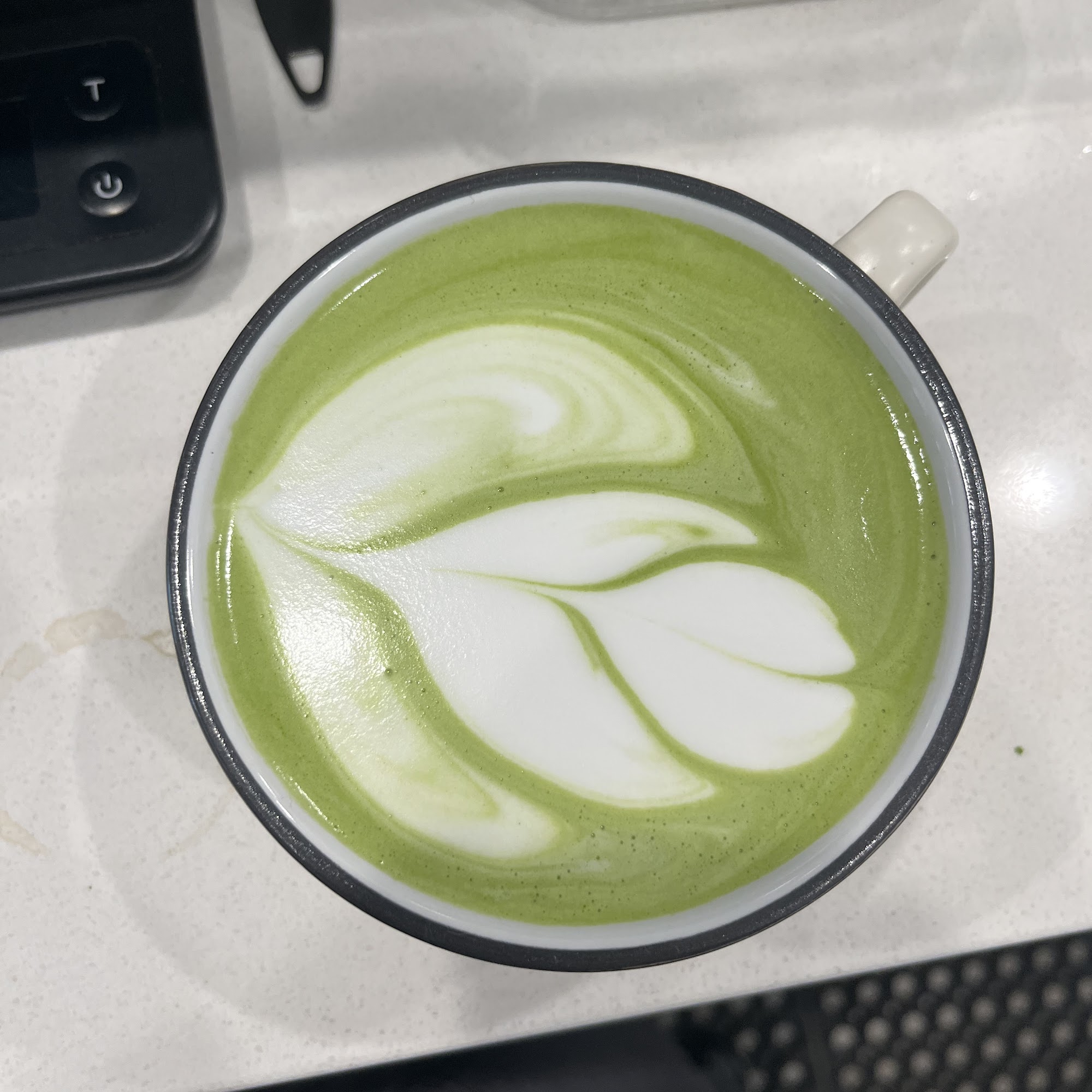The homemade strawberry syrup in my matcha was just perfect!