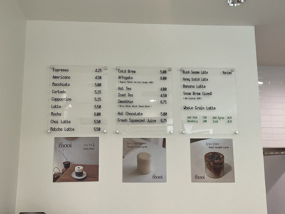 This place is a hidden gem cafe above the hmart mall. Ktown cafes are getting crowded!! But this place has wifi, a few seats inside, but was quiet when I went. Service was really kind. Got the Butterscotch Latte! Very unique to Cafe Mooi, haven't seen this anywhere! Loved the cream on top. It's on the sweet side.