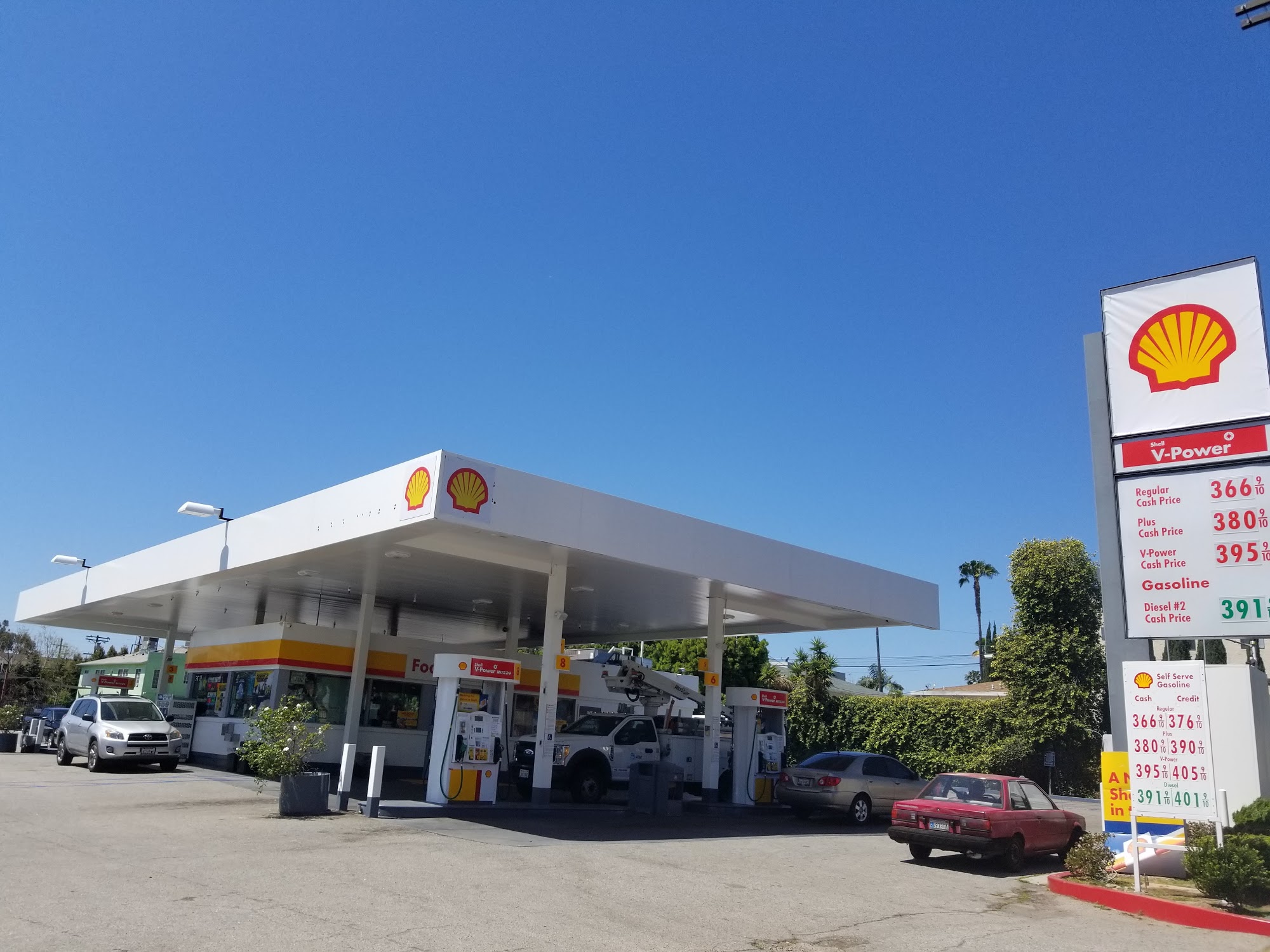 Beware of this Shell, they trick you in with the $ 4.99 sign for gas. But at the pump the price is something else, my price was $ 5.17.Thankfully I used my Ralphs card and saved, but I will think twice before coming here again.