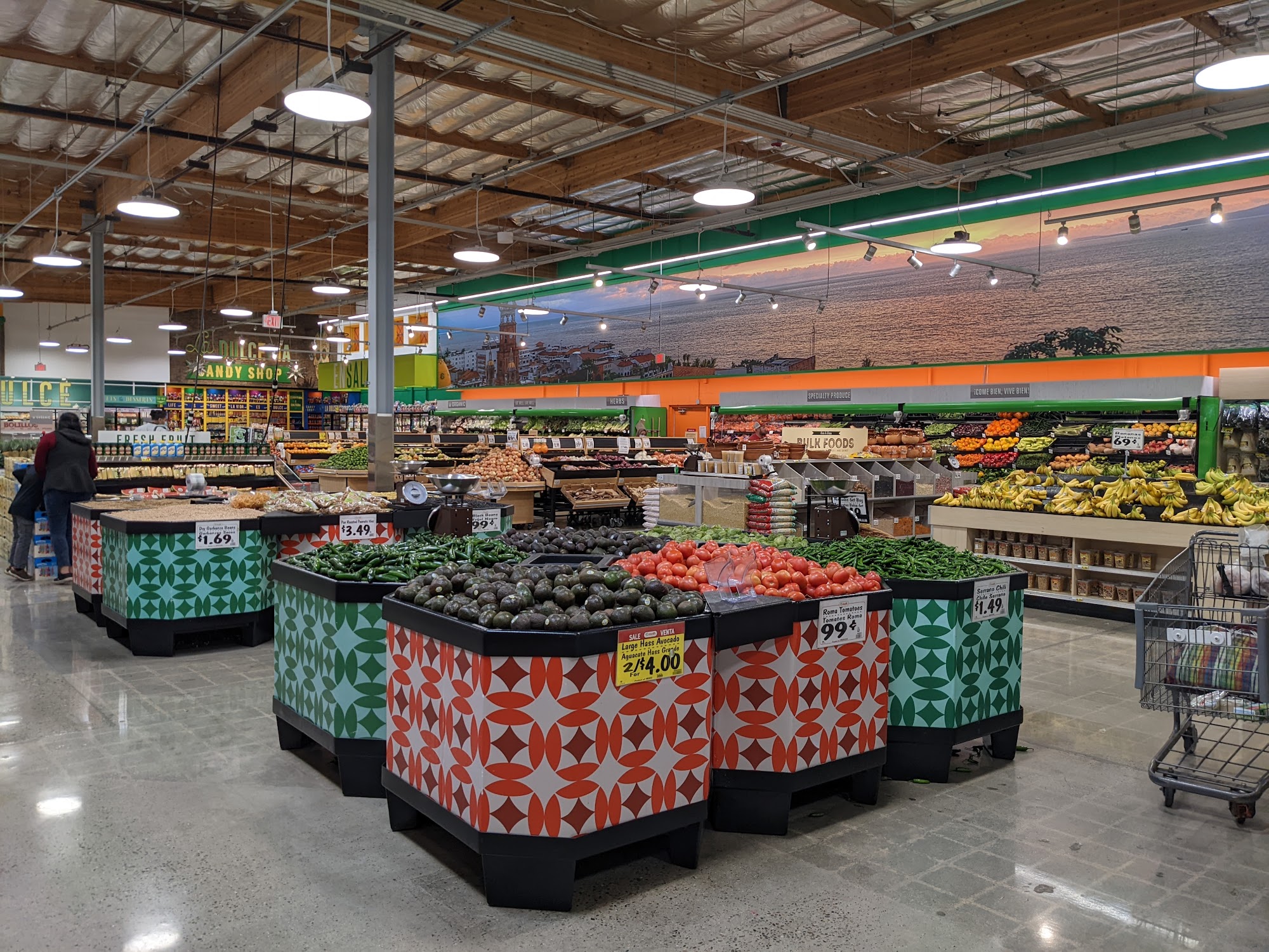Vallarta Supermarkets is a clean and pleasant grocery store with a friendly staff and excellent customer service. It offers a good assortment of high-quality products, including big thick steaks, fresh meats, produce, bakery, floral, and ready-to-eat food. The store has a bit of everything, from charcoal to paper plates, providing just about anything one might crave. While the kitchen service could be faster, the overall experience is highly regarded, with particular praise for the fresh and delicious sushi counter. It is considered a convenient and best overall grocery store by many.