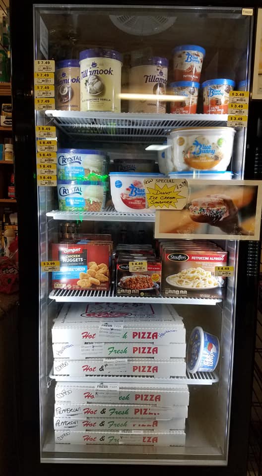 Cozy little country store. Nice selection of prepared sandwiches, burritos, and burgers for the microwave. Great pastrami sandwiches and I am told excellent take and bake pizza.