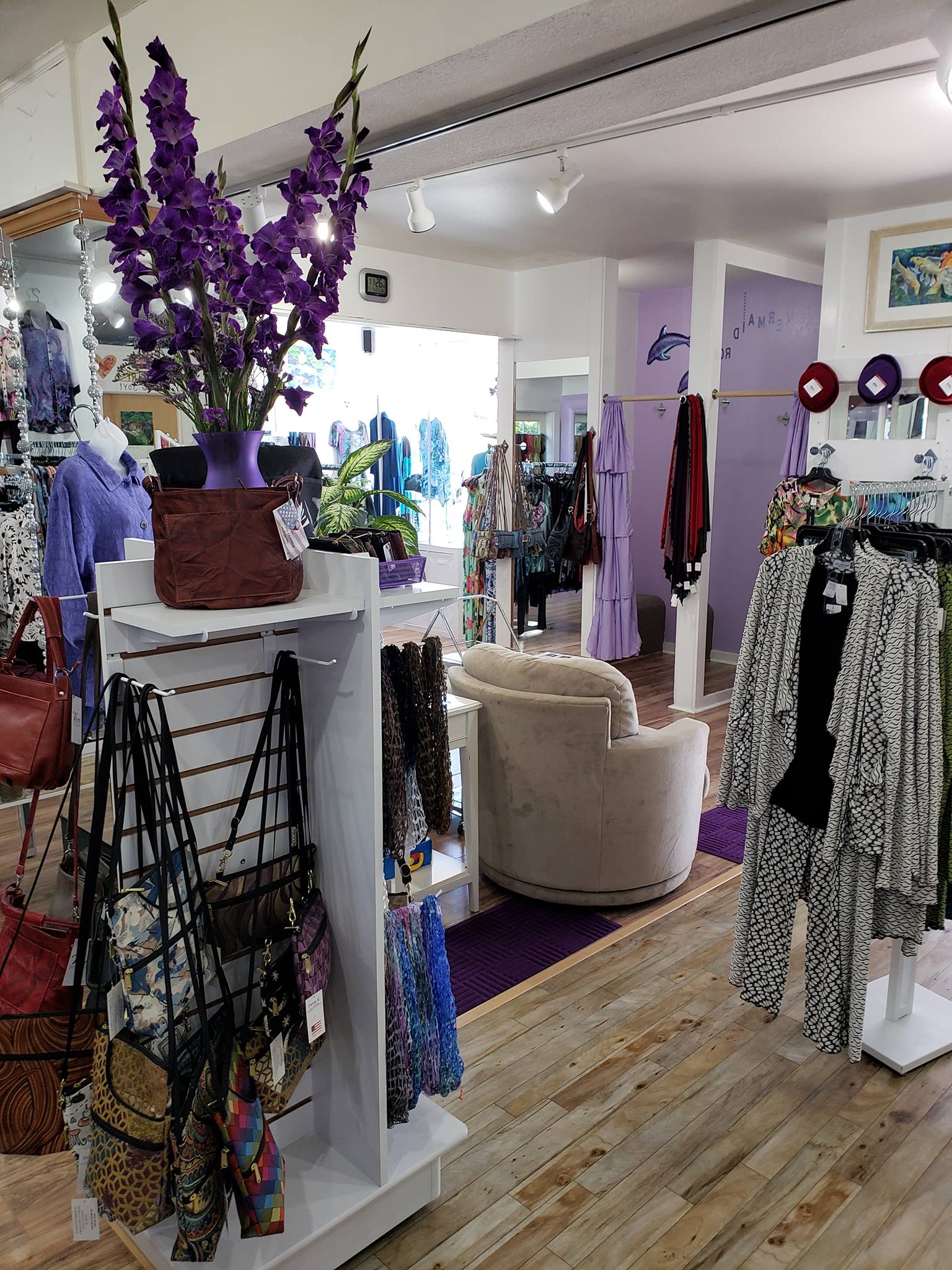 Beautiful clothing. Staff was so friendly and helpful. I had just lost weight and i was still trying on clothes too big. She found the perfect size and me feel confident again