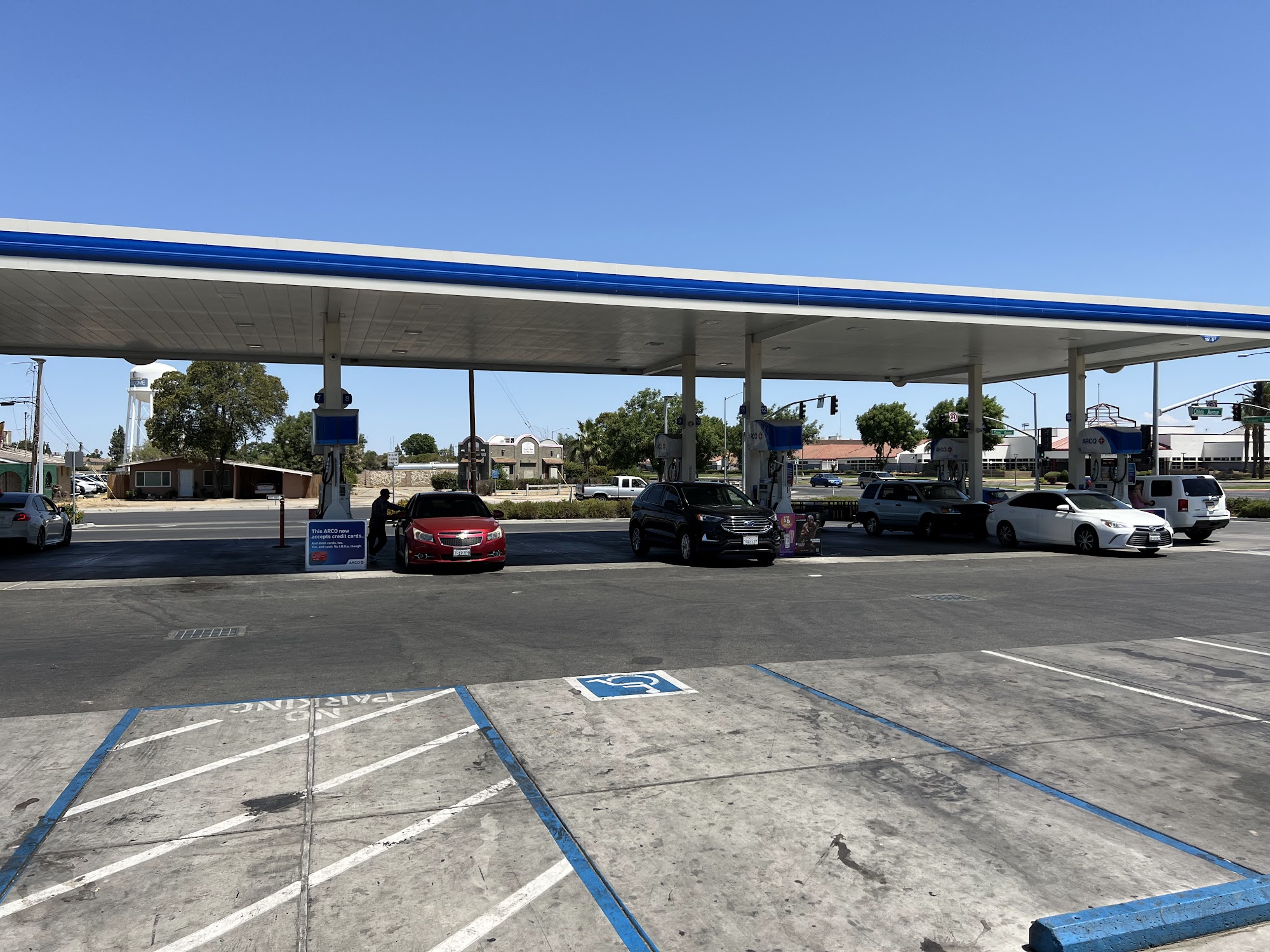 ARCO is a gas station that offers standard gasoline at competitive prices in California. The station is clean and new, with a staff that can communicate in English. The parking lot and driving experience can be challenging, with rude drivers and stressful navigation. However, the transaction process at the pump is generally smooth, with a user-friendly digital interface. While the gas lines can be long, the overall experience is satisfactory, especially considering the lower prices compared to nearby competitors.