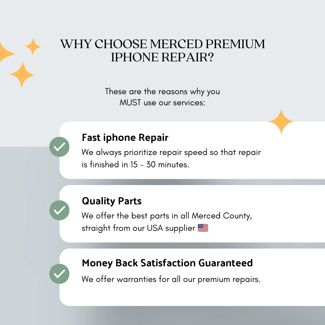 Merced Premium iPhone Repair offers fast, professional, and friendly service. Repairs, including for cracked screens and broken cameras, are often completed within 30 minutes to an hour, providing same-day service. The business is noted for extremely efficient communication and flexibility with appointment times. Prices are consistently described as affordable, reasonable, and the lowest available, with quotes being the best found. The service frequently includes added benefits like a new screen protector at no charge. Customers highly recommend the business, calling it one of the best places for phone repair and stating they would definitely return.