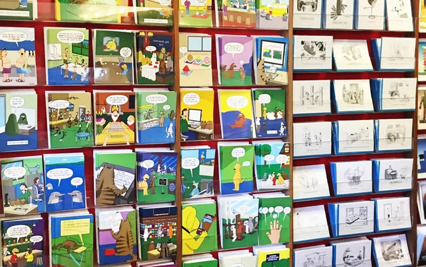 Lots of humorous cards; friendly owner. My local Greetings card store in Albany closed, so now I drive to Mill Valley and get my birthday cards for the coming year all at once. Good assortment, and much friendlier, to boot!