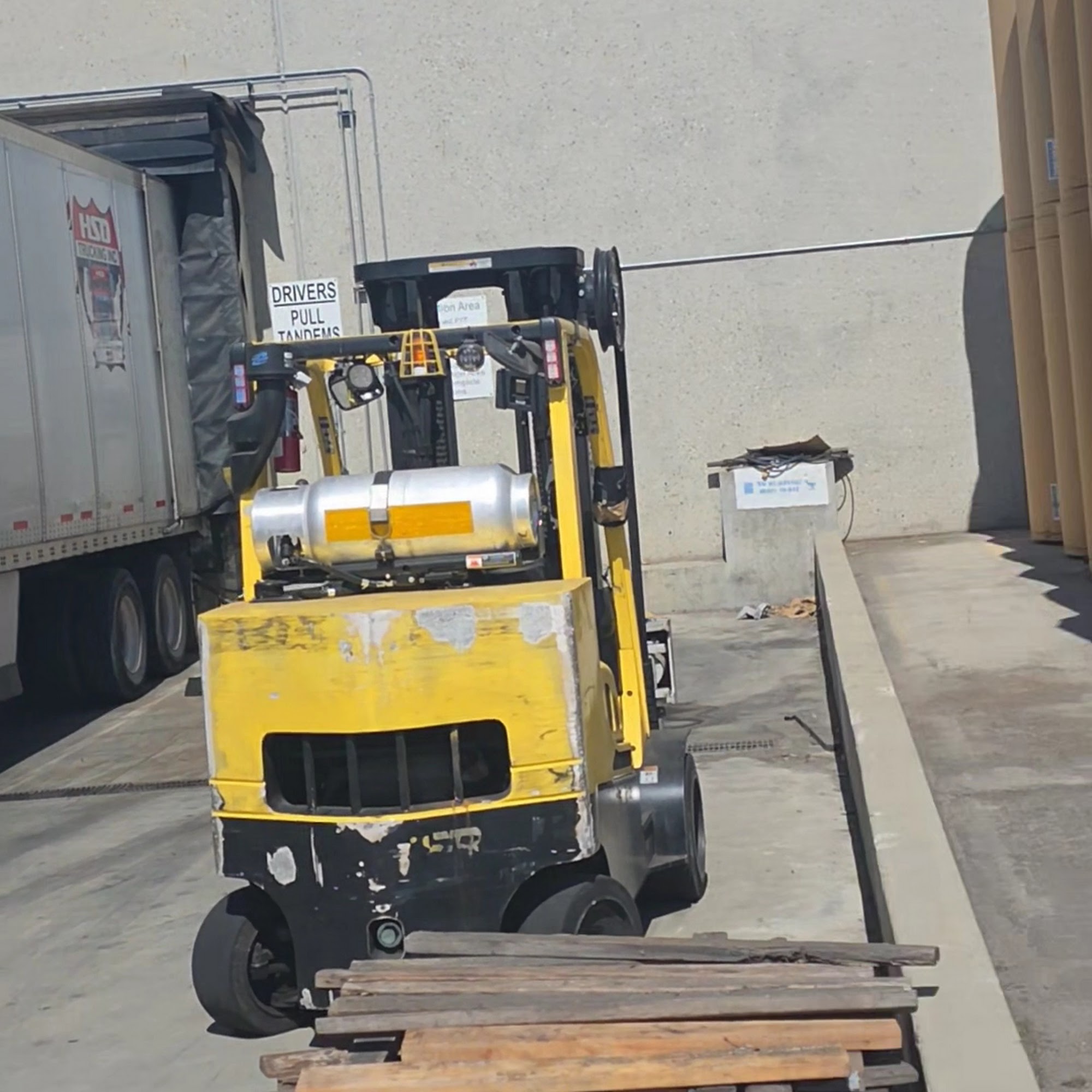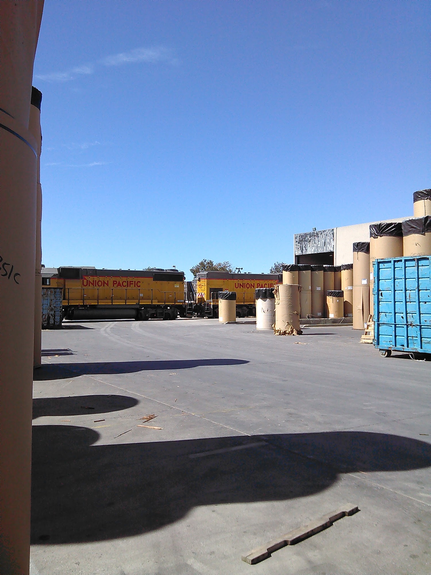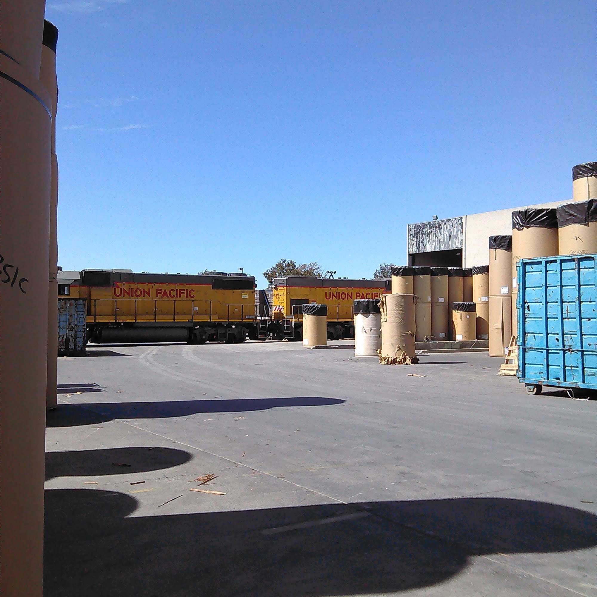 The truck entrance is actually on Los Coches, at the west end of the yard, if delivering paper rolls, go to the back, open the trailer, put the bills in the back and back into the first dock if it's open. slide tandems and disconnect the air line. quick unloads, cool people.