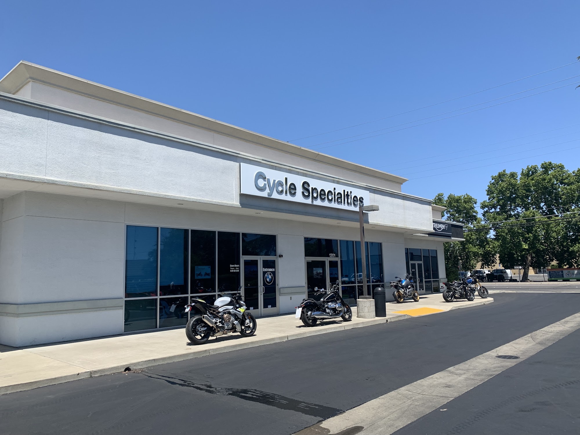 Triumph Modesto, also known as Powersports of Modesto and formerly Cycle Specialties, is a Triumph dealer in Modesto, California. The team is described as fantastic, professional, friendly, and deeply knowledgeable. They are eager to help and make customers feel welcome, not like just another number. The staff is laid-back and patient, even with many newbie questions. The dealership offers sales, service, parts, accessories, and apparel. Their service department is trusted by customers for multiple bikes and regular maintenance. The inventory is incredible, with a huge selection of motorcycles, street bikes, off-road vehicles, and gear. They carry all the sought-out models and are in the business of selling bikes, not sitting on them. The buying process is easy, with no pushy sales tactics. Customers report having a great experience from beginning to end, feeling so satisfied that they would drive from the Bay Area and plan to return for repeat business. They are considered the place to go.