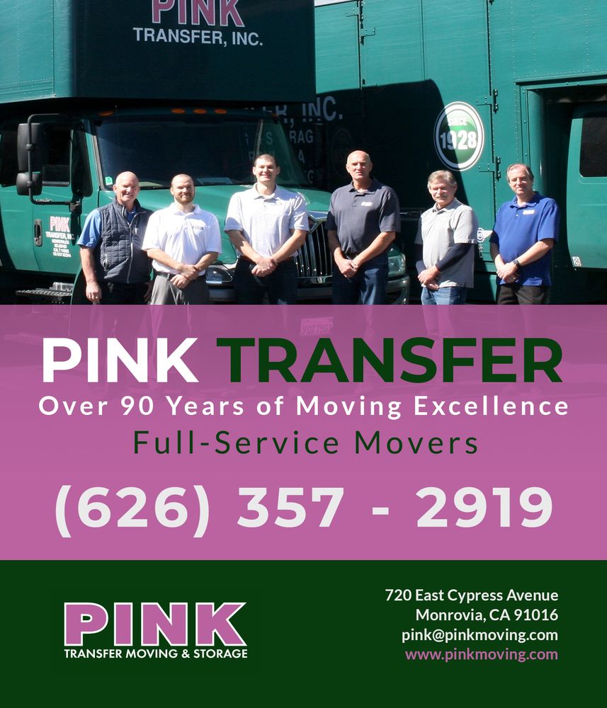 Professional moving company in Monrovia, California. Offering local moves, long-distance moves, office and commercial moves and warehouse storage. Established in 1928. Family owned & operated. Experienced in specialty moving services. Providing packing services, decluttering services and senior moves. Committed to customer satisfaction. #PinkTransfer #MonroviaMoving #MoversNearMe