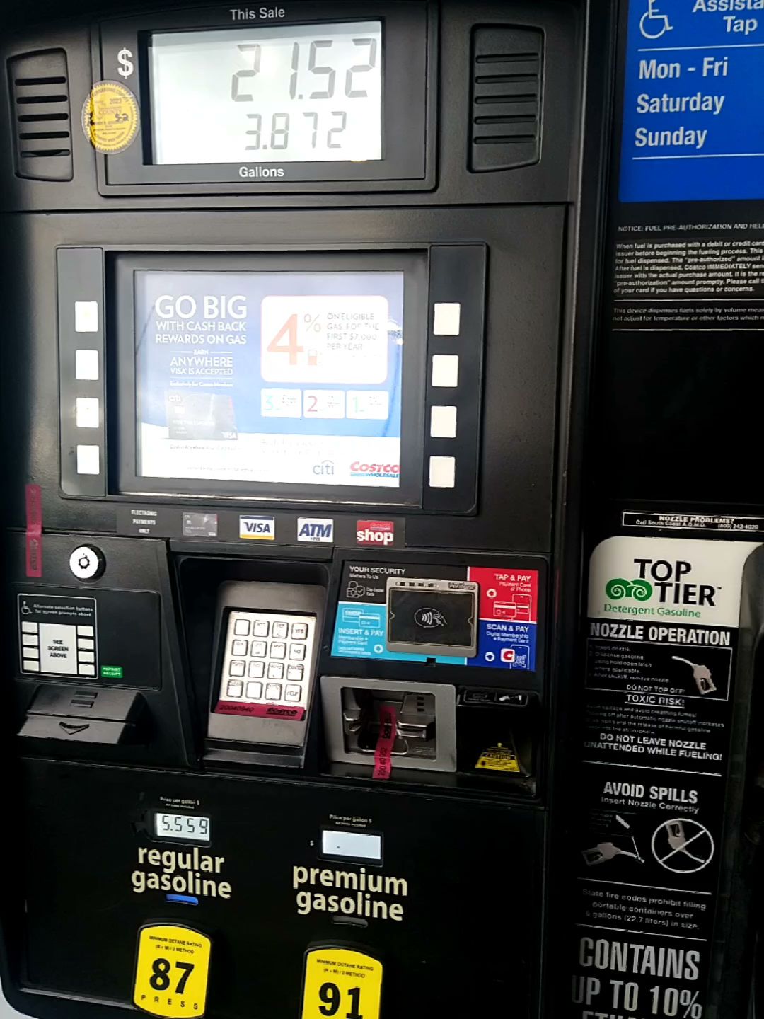 The Costco employees are always visible, and very nice, and ready to help if there’s an issue. They check the pumps so there are no skimmers attached, and nobody around harassing customers for money. I feel much safer getting my gas here.