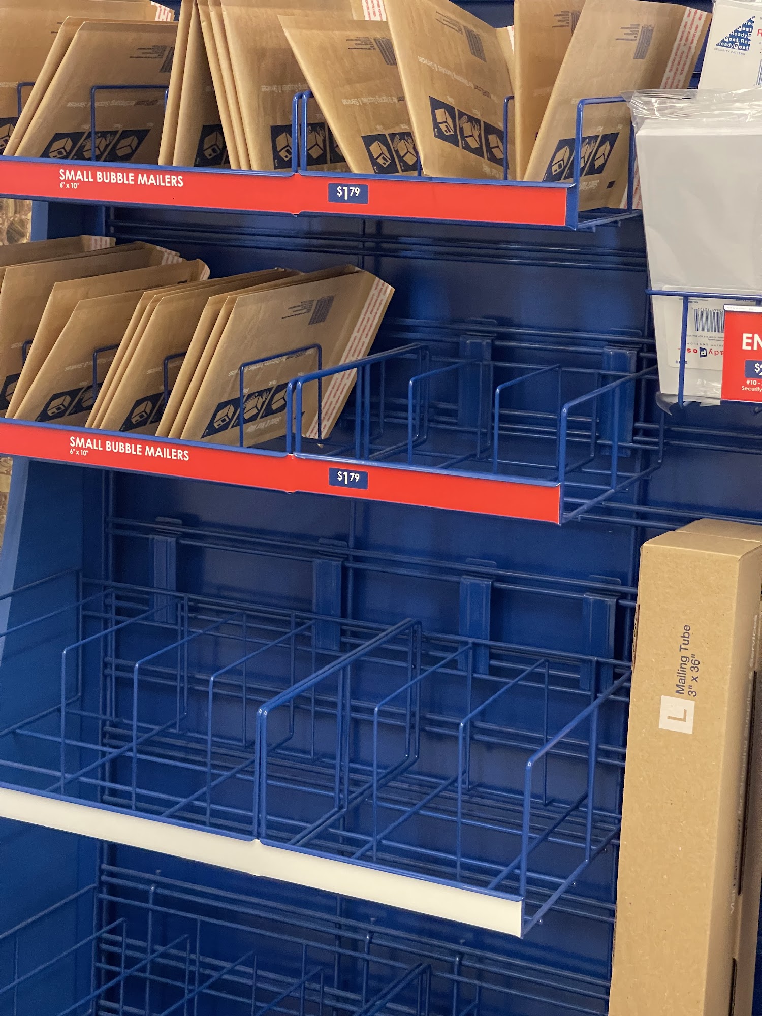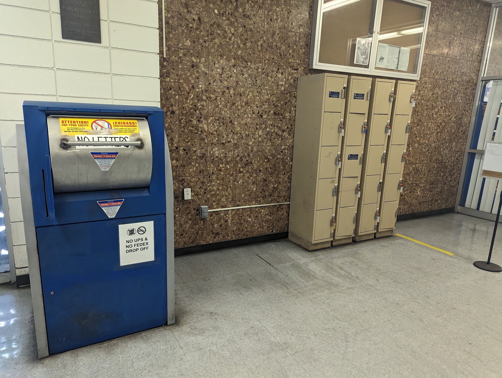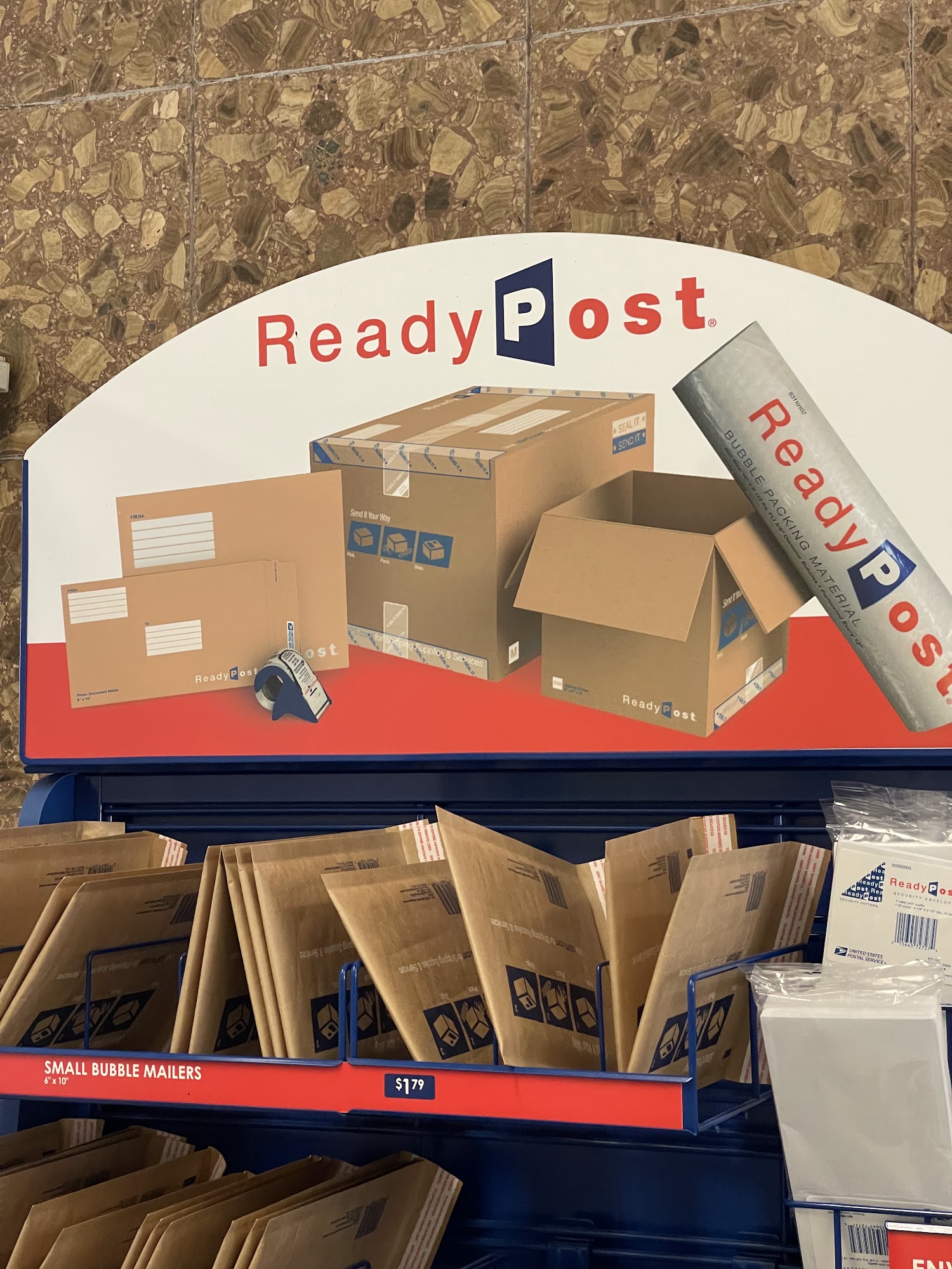 Offers bulk drop off in the back if you have prepaid labels. Larger location and can save time if you buy postage ahead of time. Parking lot is pretty small and cramped so highly recommend parking on the street