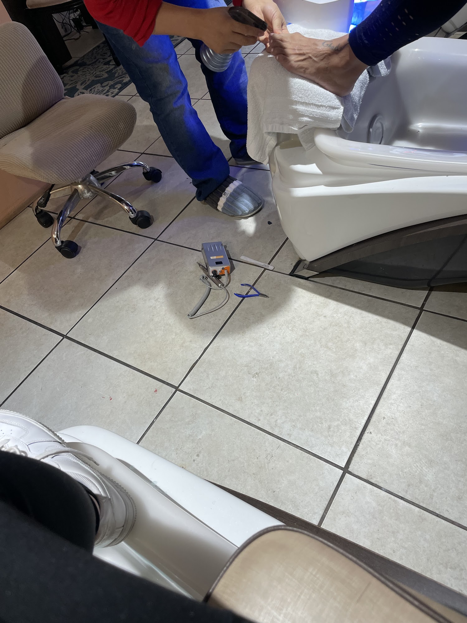 First pedicure. Podiatrist was doing a very painful nail clipping every 10 weeks. Got tired of the treatment so made an appt. At Top Nail. So much better. Very professional and a lot less pain & no blood. Coming here from now on
