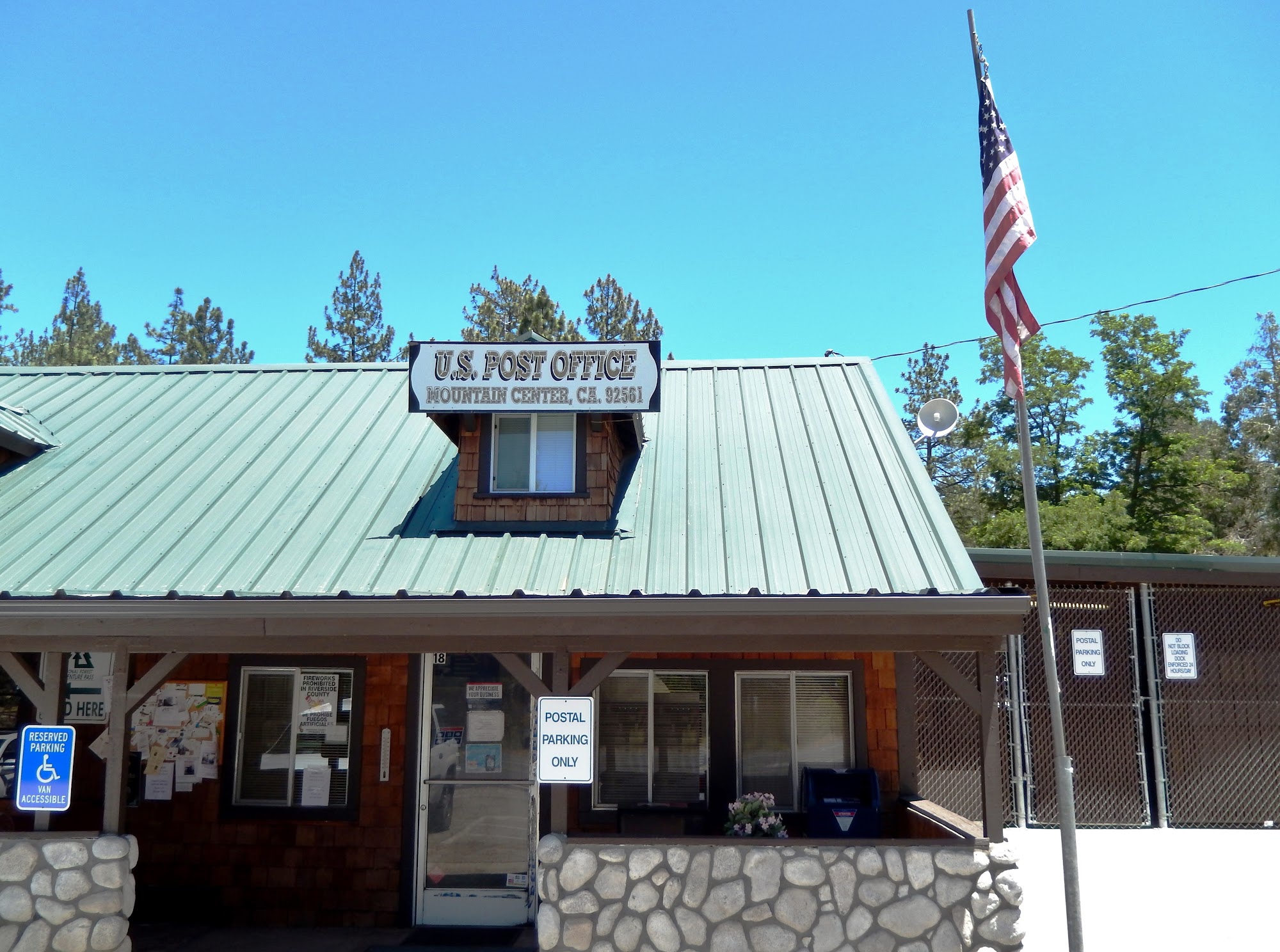 Small, local office, full service, home delivery, po boxes, good service, rarely a line , central location, free parking, next to a restaurant, cool feed &gift store, gas station market, and a mountain stream surrounded by wildlife!!