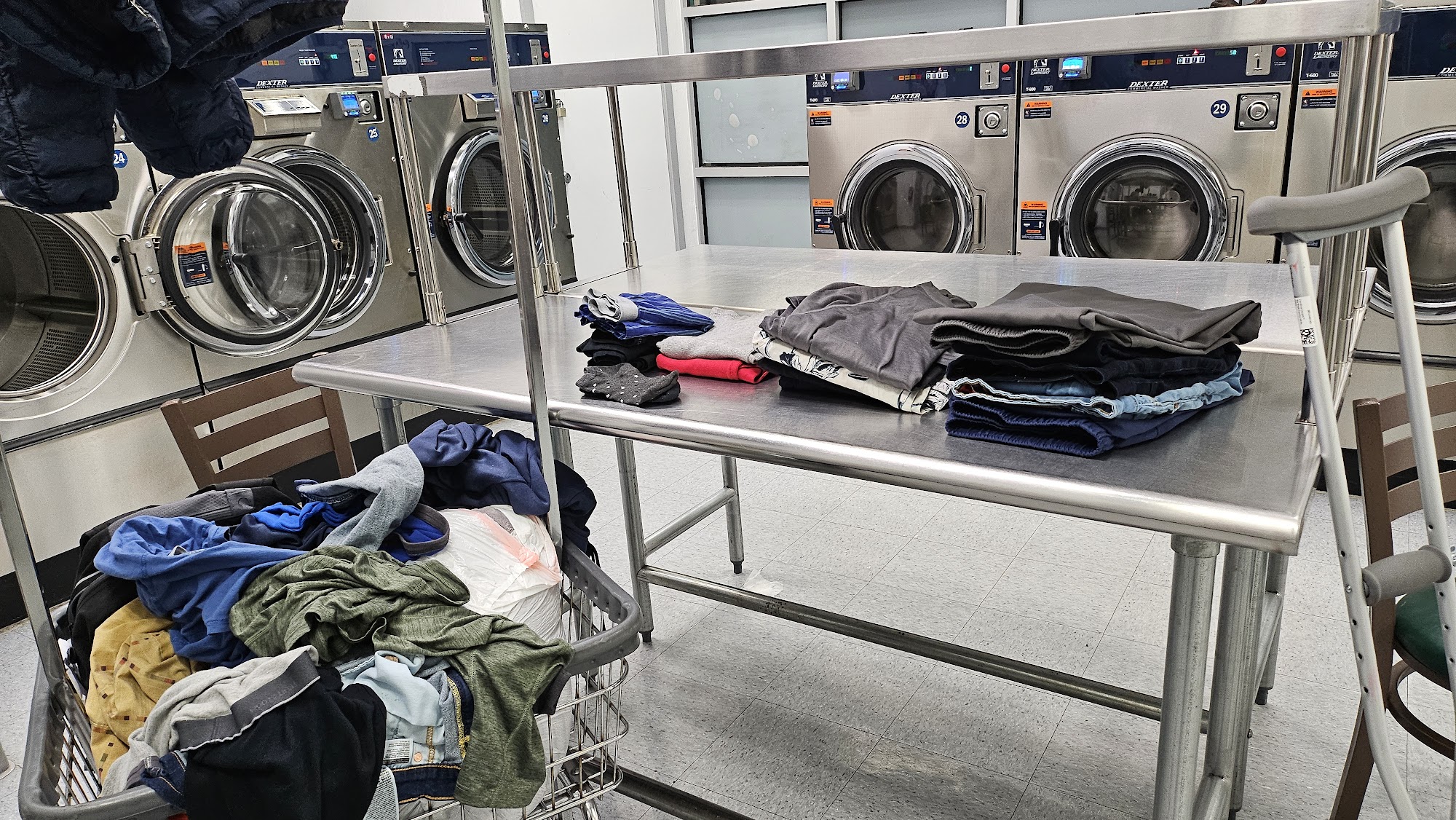 It is a small quiet laundromat... Enjoyed the atmosphere only thing is i had to use the restroom but it's locked and i did not see anyone to ask about it. However even with that i would continue coming here when in town.