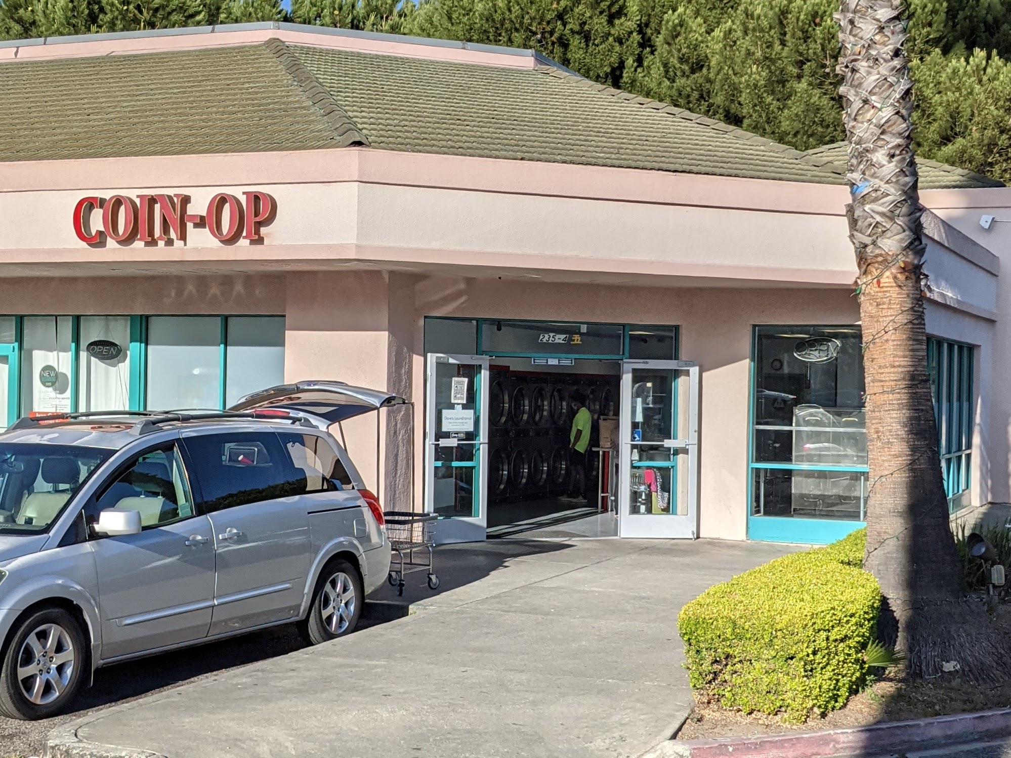 Looks like a good place and there are stores around for you needs. They have 3 different size washing machines. $4.50, $7.50, $9.75 jumbo 5am-11pm it does have a restroom and you can use quarters or gPay. Card, Tap.