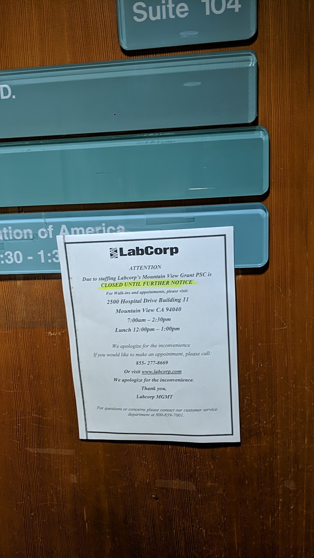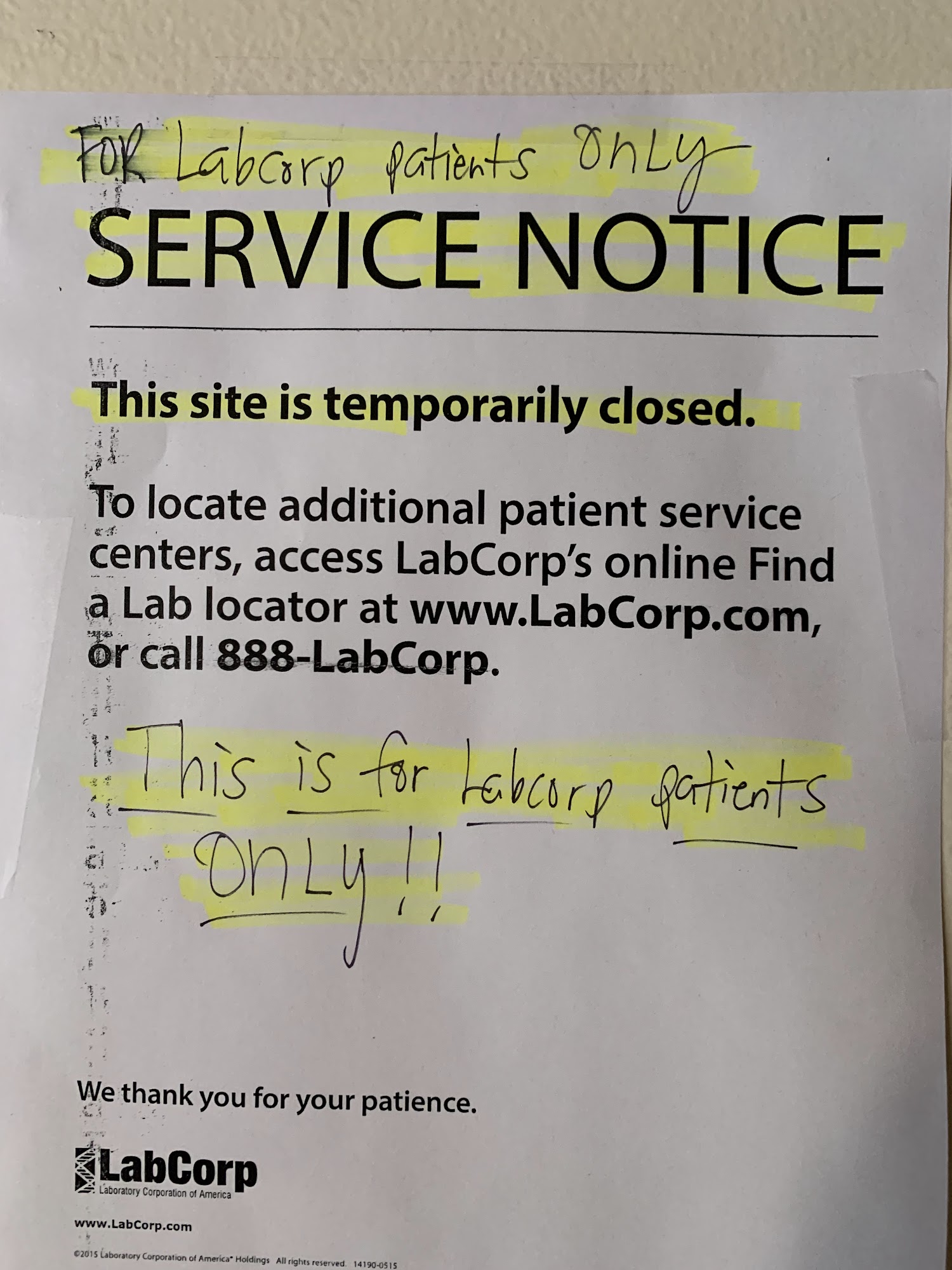 This LabCorp location is TEMPORARILY CLOSED