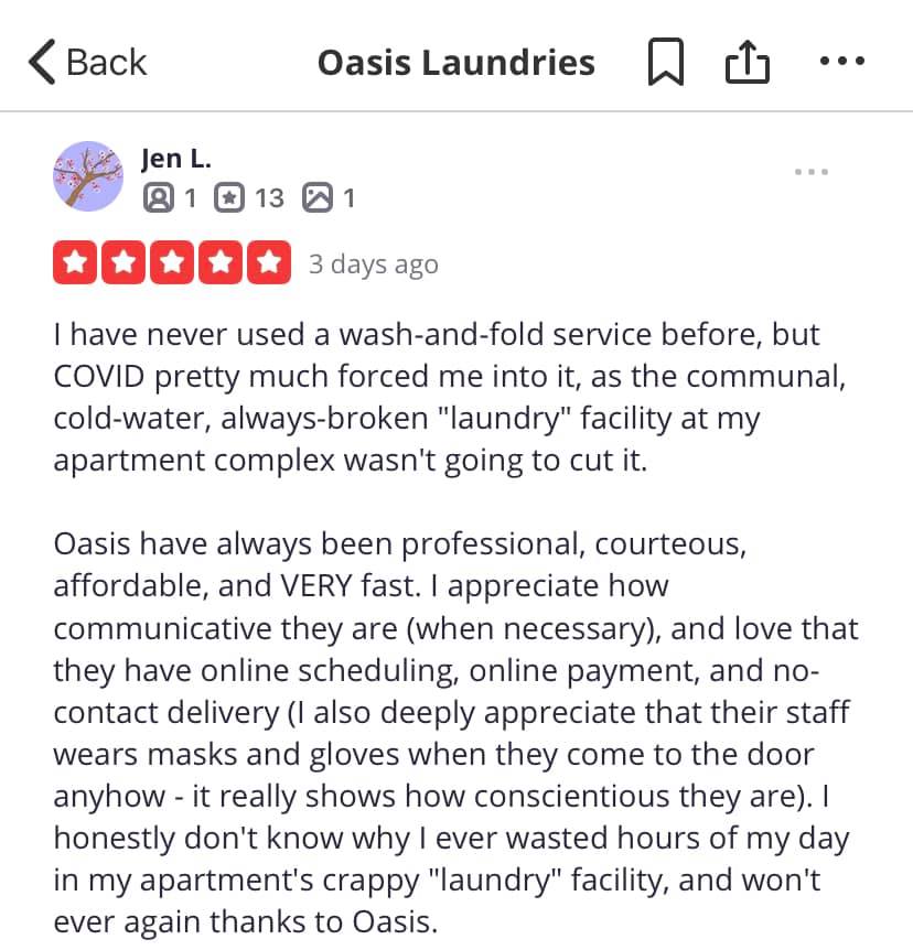 Oasis Laundry offers impeccable and reliable wash and fold services at reasonable prices. Customers appreciate the quick, friendly, and professional service, as well as the convenience of pickup and delivery. Clothes are returned neatly packed, smelling good, and undamaged. The honesty of the staff is also highlighted, with cash found in pockets returned safely. Many recommend Oasis Laundry for its consistent quality.