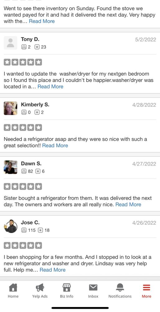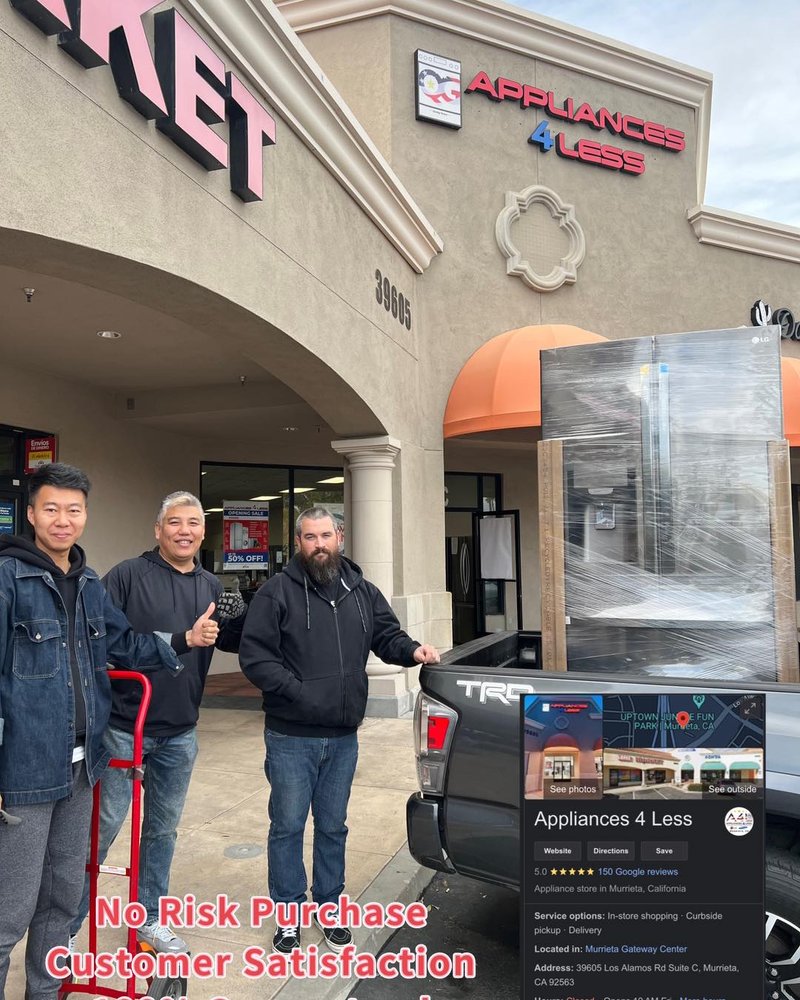 Appliances 4 Less is a discount appliance store located in Murrieta, CA that offers high-quality appliances at discounted prices. The store's mission is to simplify customers' lives and help them save money. Customers have praised the store's great customer service, with friendly and helpful staff like Cam, Ben, Lindsey, and Paco. The store offers a wide selection of open-box appliances, including fridges, washers, and dryers, with minor dents and scratches, but they come with a 1-year warranty. Customers have reported paying about half the retail price for their appliances and being satisfied with the delivery and installation services provided by the store. Overall, Appliances 4 Less is a reliable and affordable option for those in the market for new home appliances.