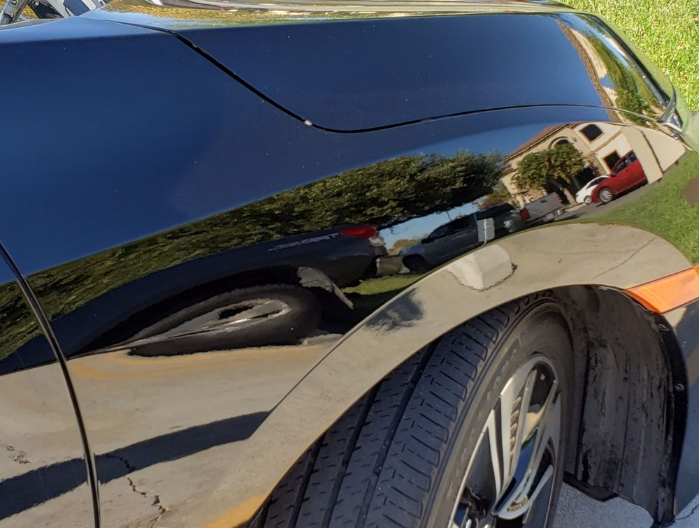 Brent went above and beyond in fixing a dent on my door! The paint was perfectly matched to the original paint on my car, they matched the blue paint chips in the black color. Outstanding! I also noticed he fixed the spring on my gas tank so it will pop out when I hit the button now!!