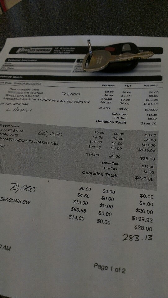 Les Schwab Tire Center in Napa provides tire, wheel, battery, and automotive repair services. Reviews highlight great customer service, with customers describing the staff as nice, attentive, and the best, with a great team. Some customers were highly impressed and felt very happy and satisfied, noting the staff was very transparent and detailed in explaining necessary work. One customer found the service quality excellent and was thankful. However, other experiences were mixed. One customer received very expensive prices compared to other stores and felt misunderstood. Another was disappointed that the mechanics would not service an issue requiring extra effort, such as using bolt extraction tools. Despite this, many customers report positive interactions, with one noting they received immediate help without an appointment and would return.