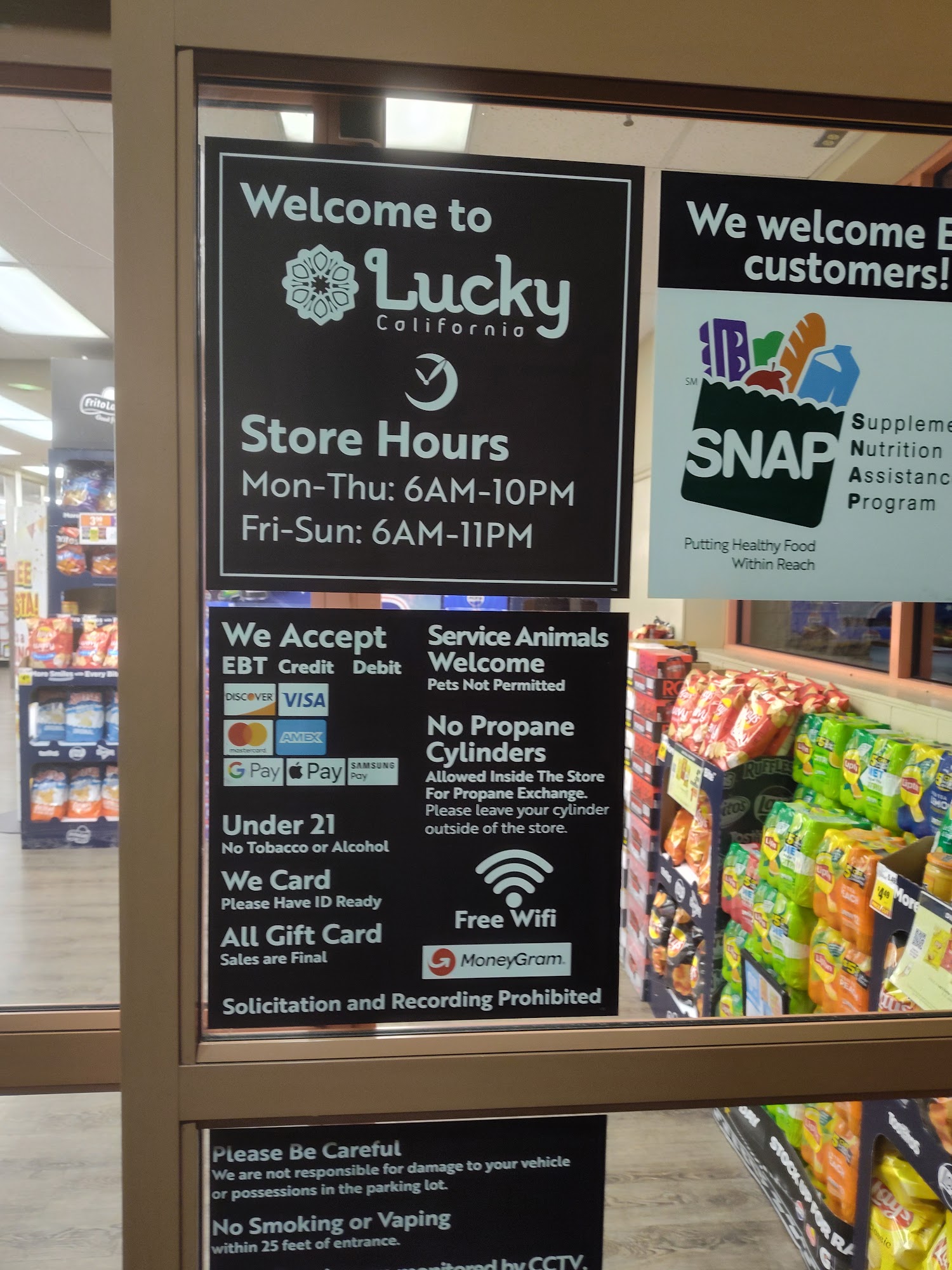 The lucky store in California boulevard or Napa is very nice and has nice food. The lucky store on Jefferson's in Napa is awful outdated dairy products terrible vegetables outdated lettuce not a very good store