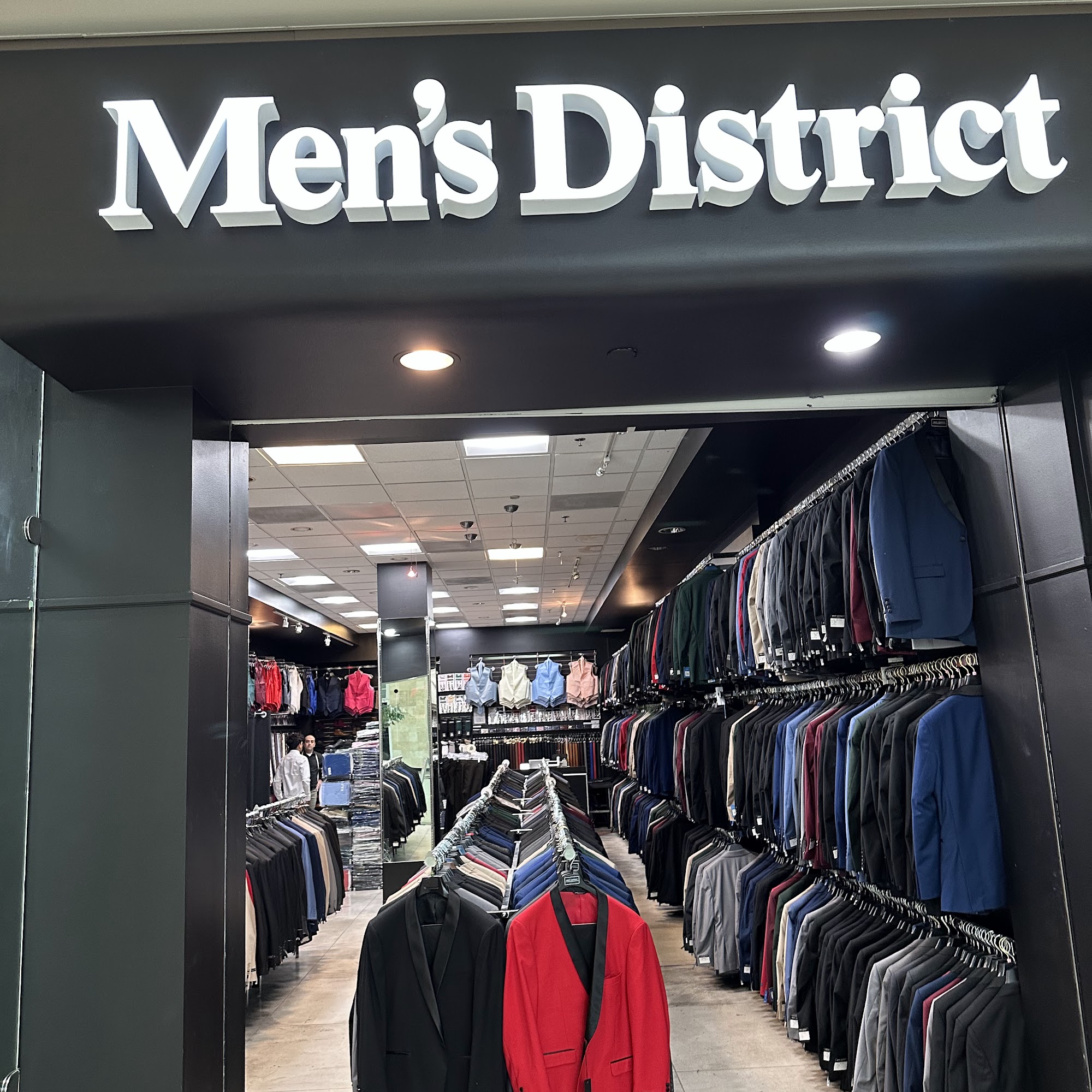 Men's District is a suit and accessories store specializing in the newest styles and up-to-date fashion. With thirteen locations, their team is extremely knowledgeable, very well trained, and provides excellent, super helpful customer service for the best and easiest buying experience, whether it is a customer's first time or for a special event like a wedding. The staff is focused on making sure customers walk out looking their absolute best, offering expert advice without pressure and an eye for detail on fit, cuts, and colors. They provide wonderful suit packages, which can include a shirt, tie, handkerchief, and socks, all at a fair and affordable price. The experience is stylish, welcoming, elevated, and top-tier, with quality selection. Customers report an amazing and unforgettable experience, would absolutely come again, and recommend it to everyone as the best place to shop.