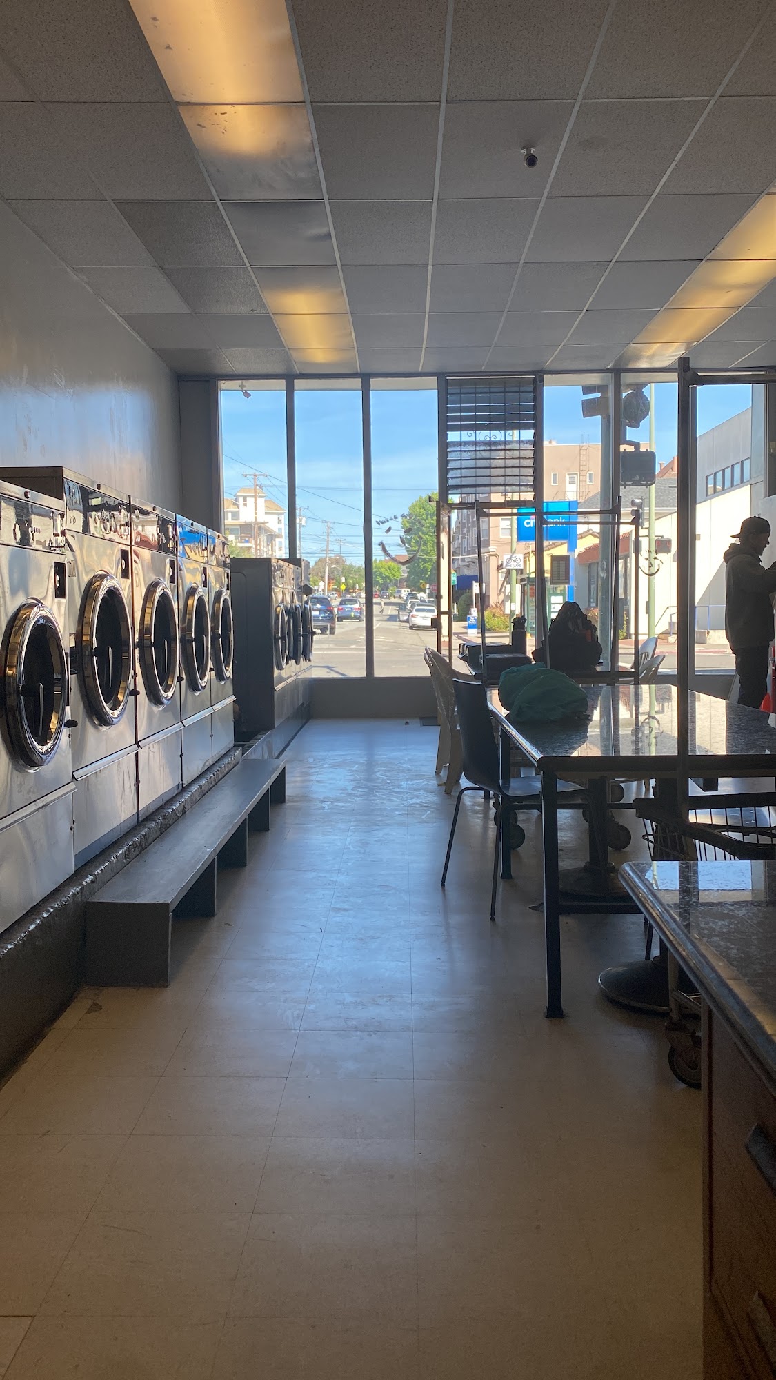 A Laundromat is a clean, safe, and spacious place to wash clothes. It is quiet and customers do not need to worry about their clothes getting stolen. The owner has made significant improvements, including purchasing all new washers and dryers that work perfectly. The interior and exterior have been freshly repainted. The floors are mopped daily, ensuring a clean environment. It is a straightforward and easy place to use. Payment is convenient with the DexterPay app, allowing customers to pay with a credit card via their phone. For those using cash, there are change machines that accept $5, $10, and $20 bills. The laundromat has long operating hours from 7 AM to 11 PM. Amenities include wheeled carts, folding tables, chairs, and a standing table. Customers can wait comfortably or visit nearby shops and cafes. The owner is friendly and accessible, making it a customer-friendly and enjoyable laundromat in a great neighborhood.
