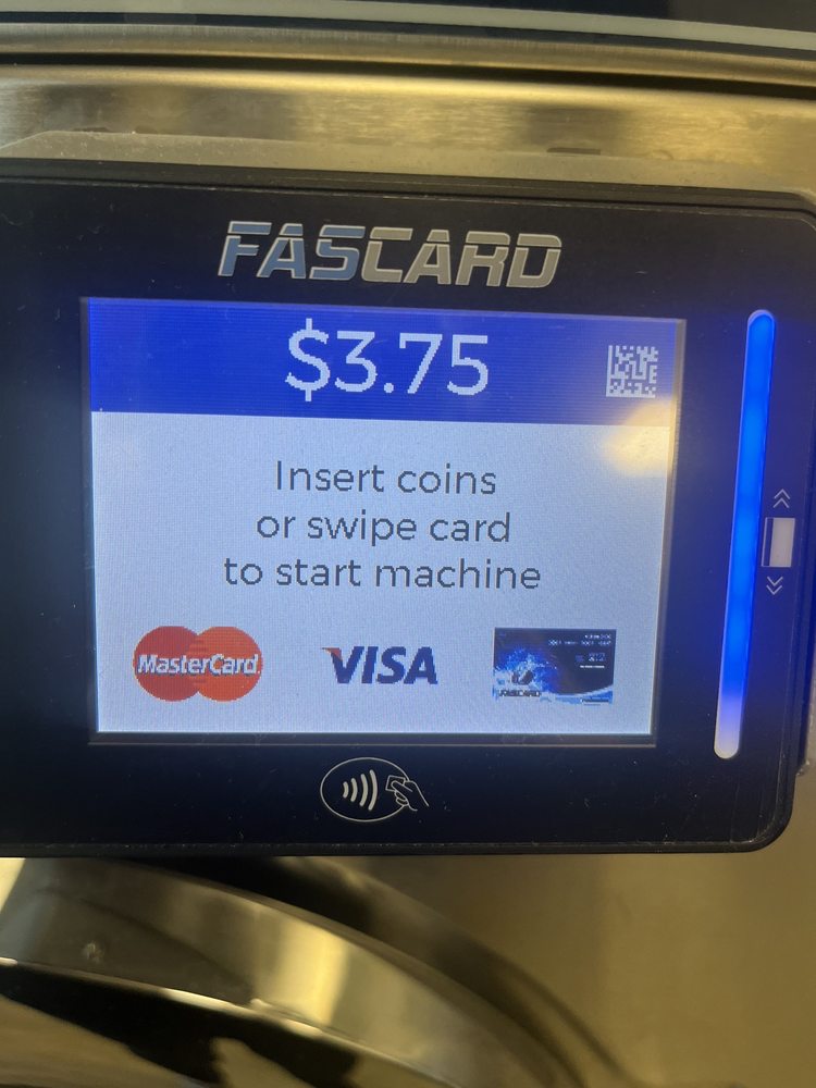 Change machines for quarters and plenty of machines that all take cards. Lots of seating as well and very clean. I’d bring cash as a backup in case there’s any internet issues with card readers, though it’s usually fine.