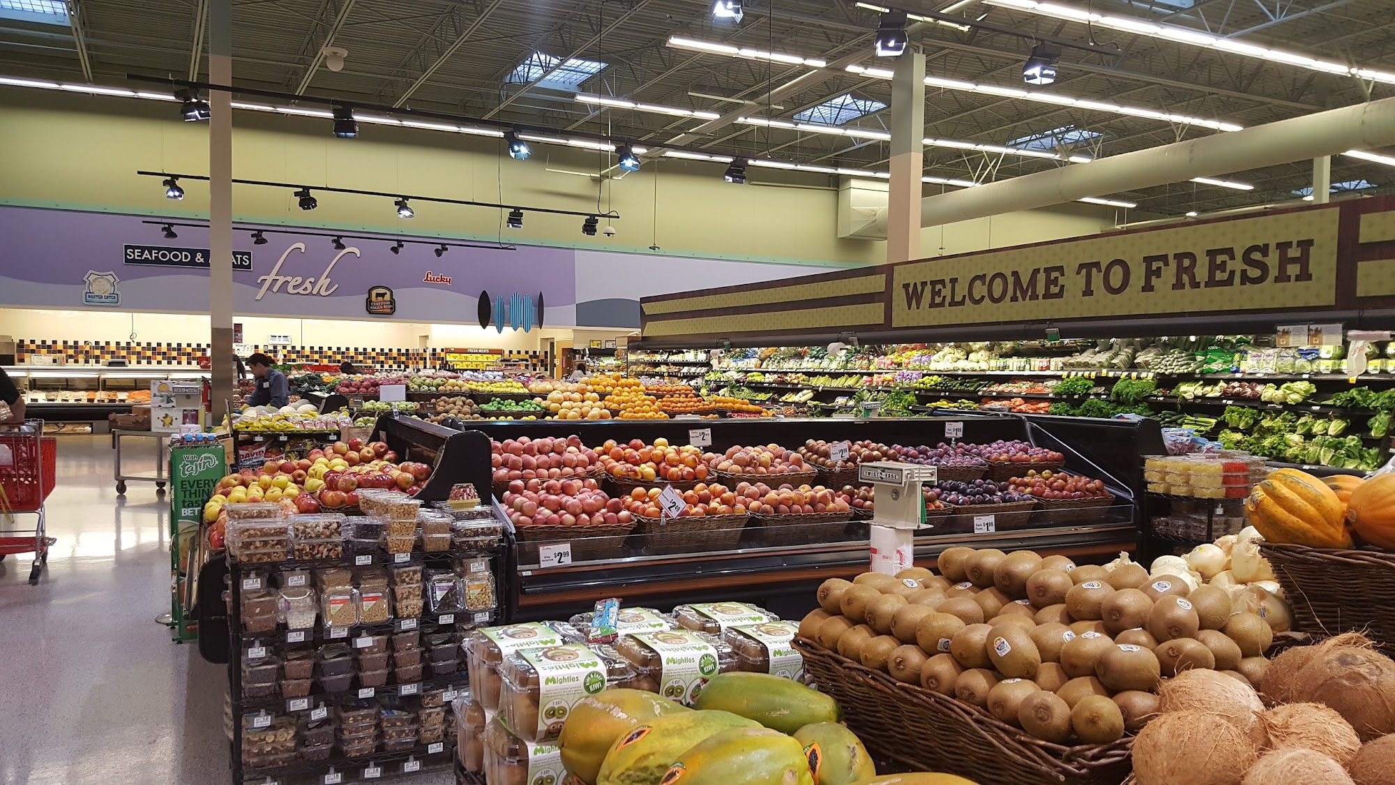 I hate this Luckys it so expensive and small store selection the store layout and the way the items are placed throughout the store. Produce are usually good and the lines go quickly