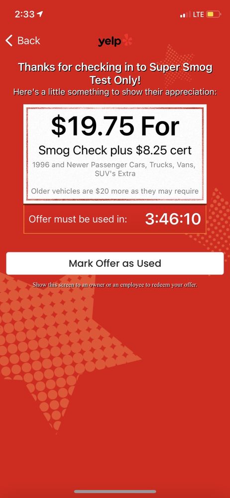 Danny is amazing! Greeted me with a giant smile and was able to get my truck smog right away with no appointment. Took less than 30min and was reasonably priced. Danny noticed my windshield needed repair and even called a local business to see if they could help.Will definitely only use Danny in The future!