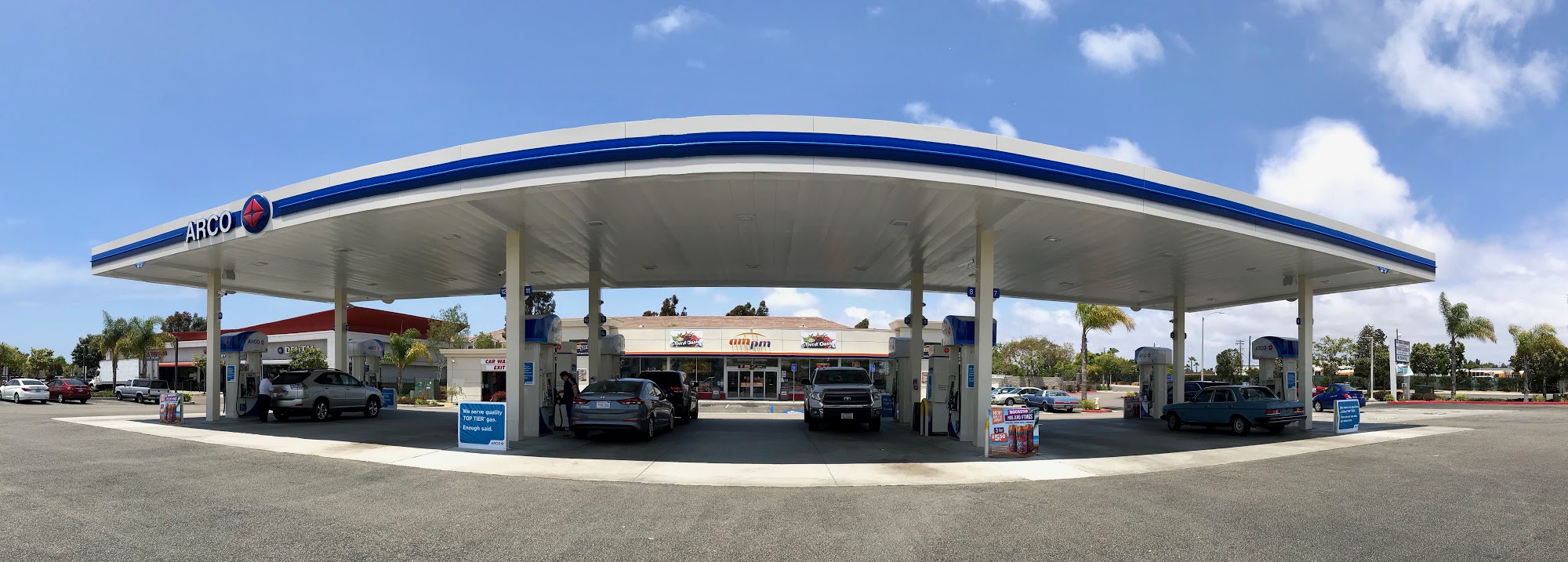 Arco gas is decent. This one is located half a mile east off the 5 interstate on Mission Ave exit. It's best to get gas here because traffic conditions traveling North or South on the 5 can be unexpected. Gas is about .25 higher than other Arco's.
