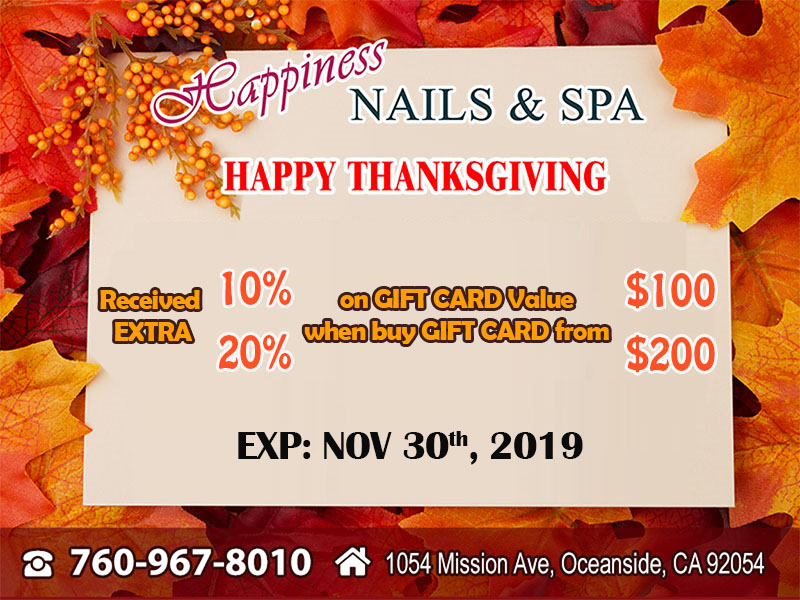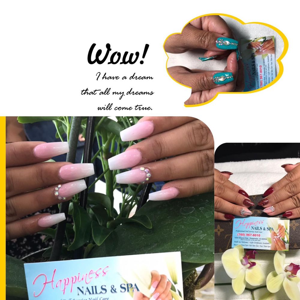 About Happiness Nails & Spa Happiness Nails & Spa . 1054 Mission Ave, Oceanside, CA 92054 (Next to Walmart , on the right side ) located across the street from Oceanside high school . (760) 967-8010