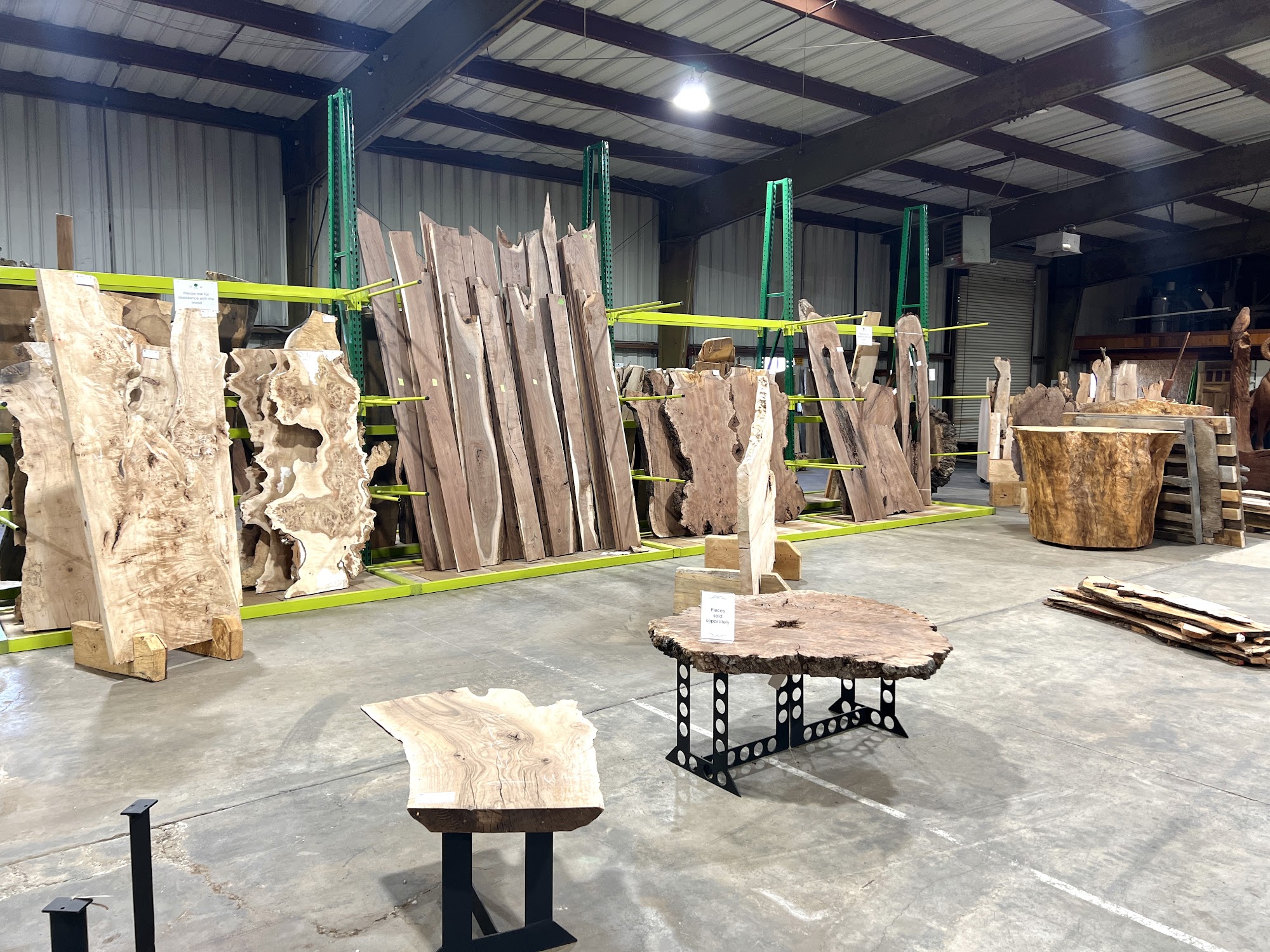 Great selection of raw wood as well as finished furniture and small items like charcuterie boards.