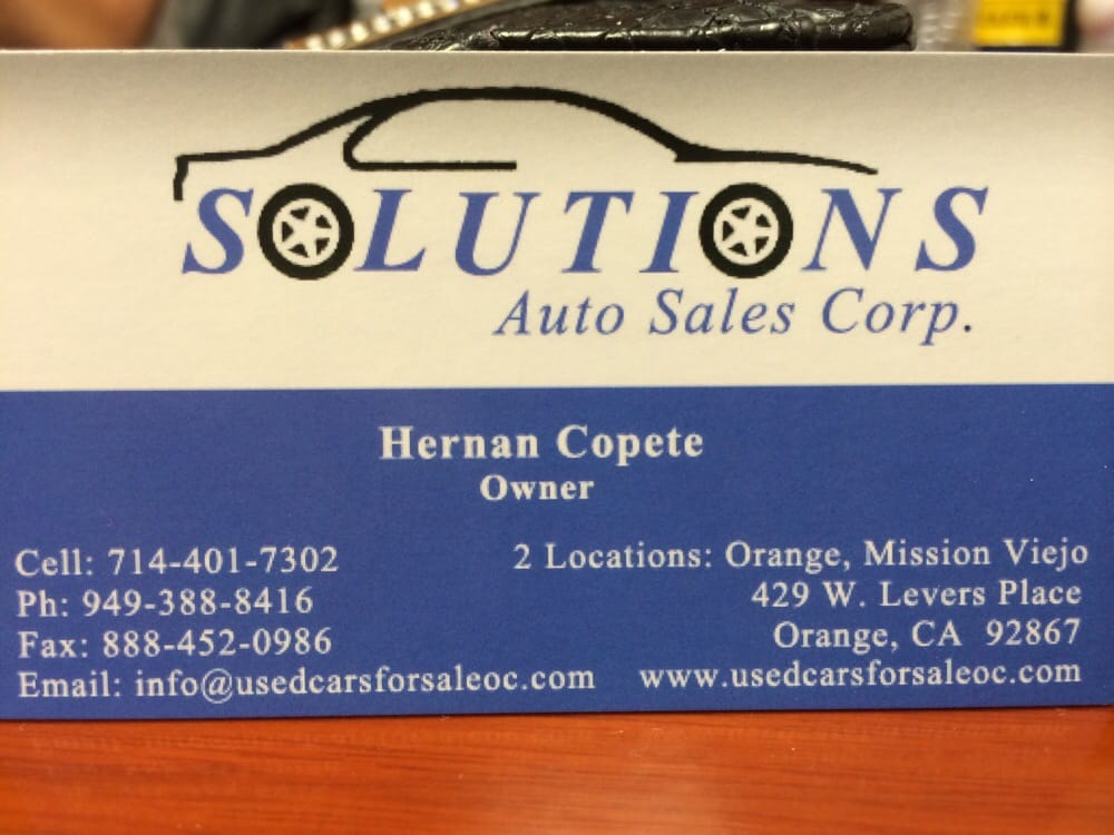 Hernan Copete is a DISHONEST USED CAR DEALER AT SOLUTIONS AUTO SALES.DO NOT BUY A CAR FROM THIS SNAKE-YOU WILL REGRET IT.EVERYTHING HE SAYS IS A LIE!!!Look it up on Yelp