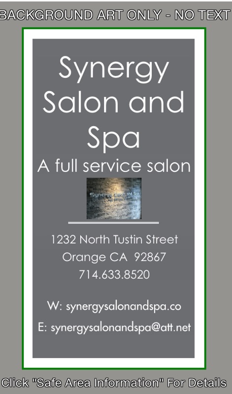 Synergy Salon and Spa is a full service salon located conveniently off the 55 freeway in heart of Orange. We offer a full menu of services for your hair care needs as well as nails and skin care. Our team of expert stylists can give you just the desired look you’ll love. Come on by and check us out.