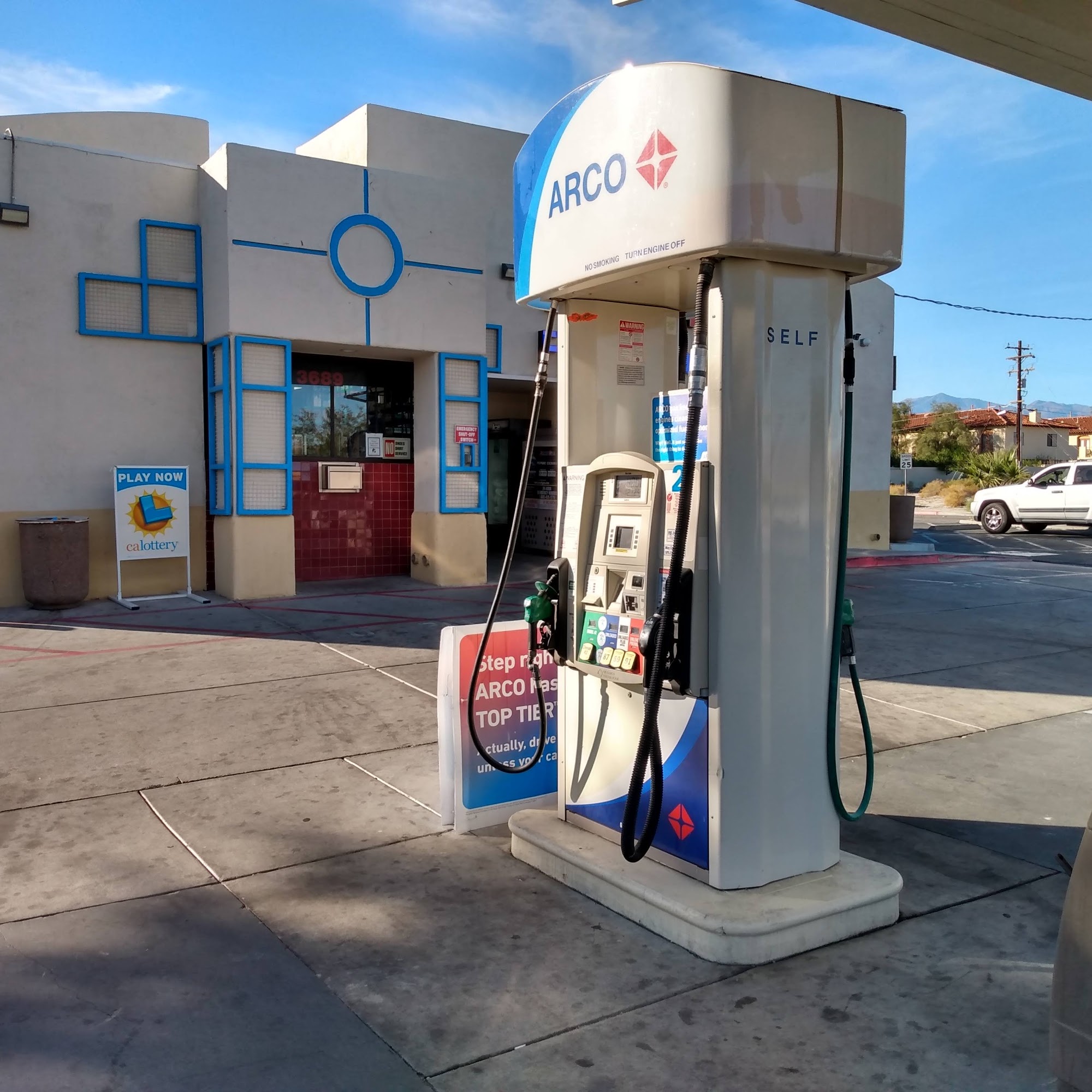 ARCO of Palm Springs has quality TOP TIER™ gas and some of the lowest priced fuel in town. The station is well maintained, clean inside and out, and is the fastest in and out gas station. Staff are friendly, prompt and helpful, with a clerk who is friendly. The convenience store has a good selection, sells lottery tickets, diesel and propane exchange. The location is great and the place is clean. People say the store is a life saver when the grocery store is away.