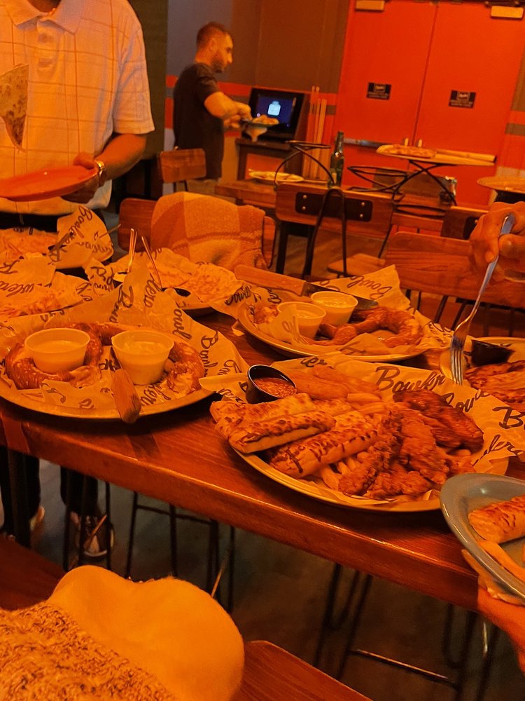 Pizza fell off, but wings are good and the bowling is solid.